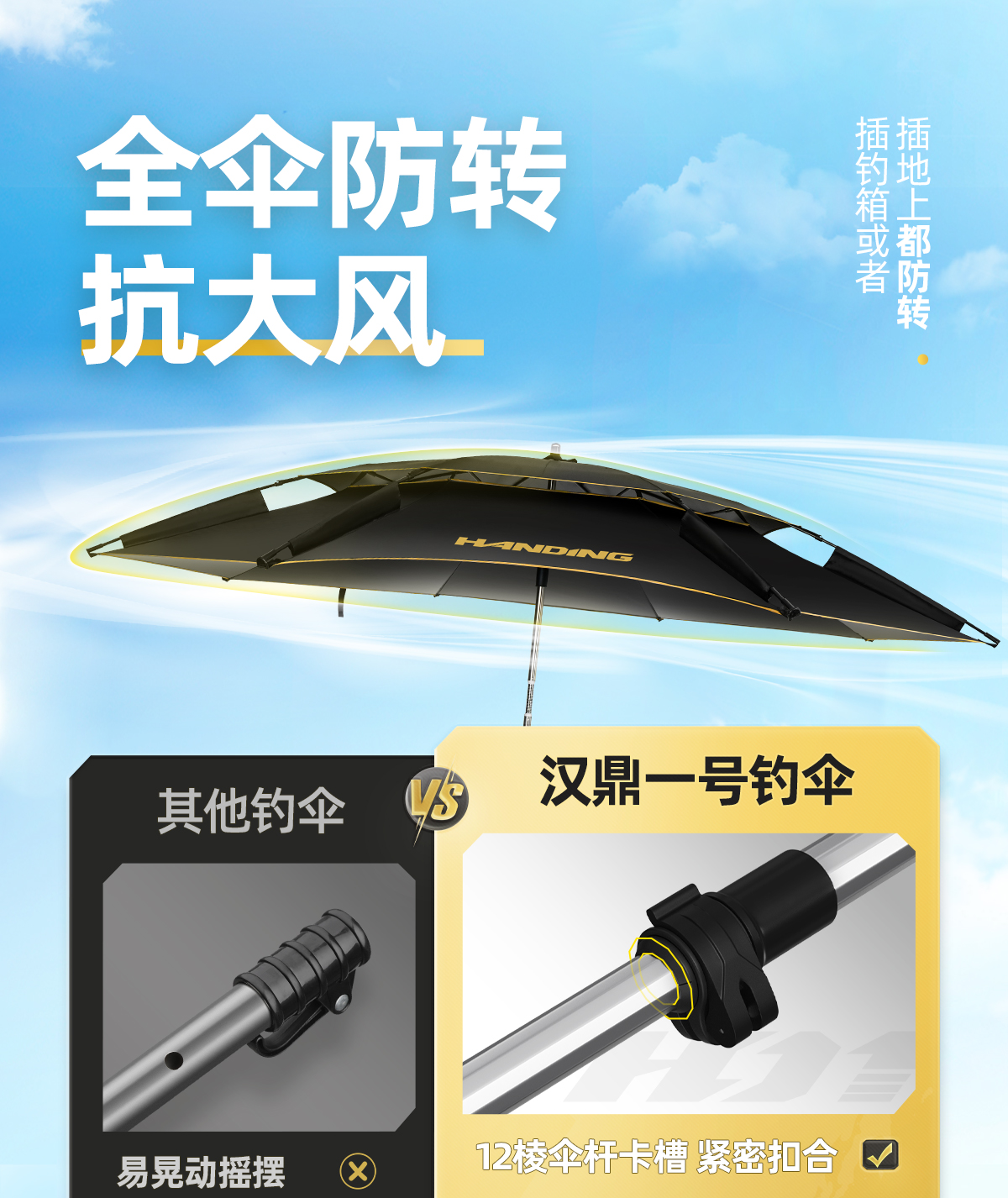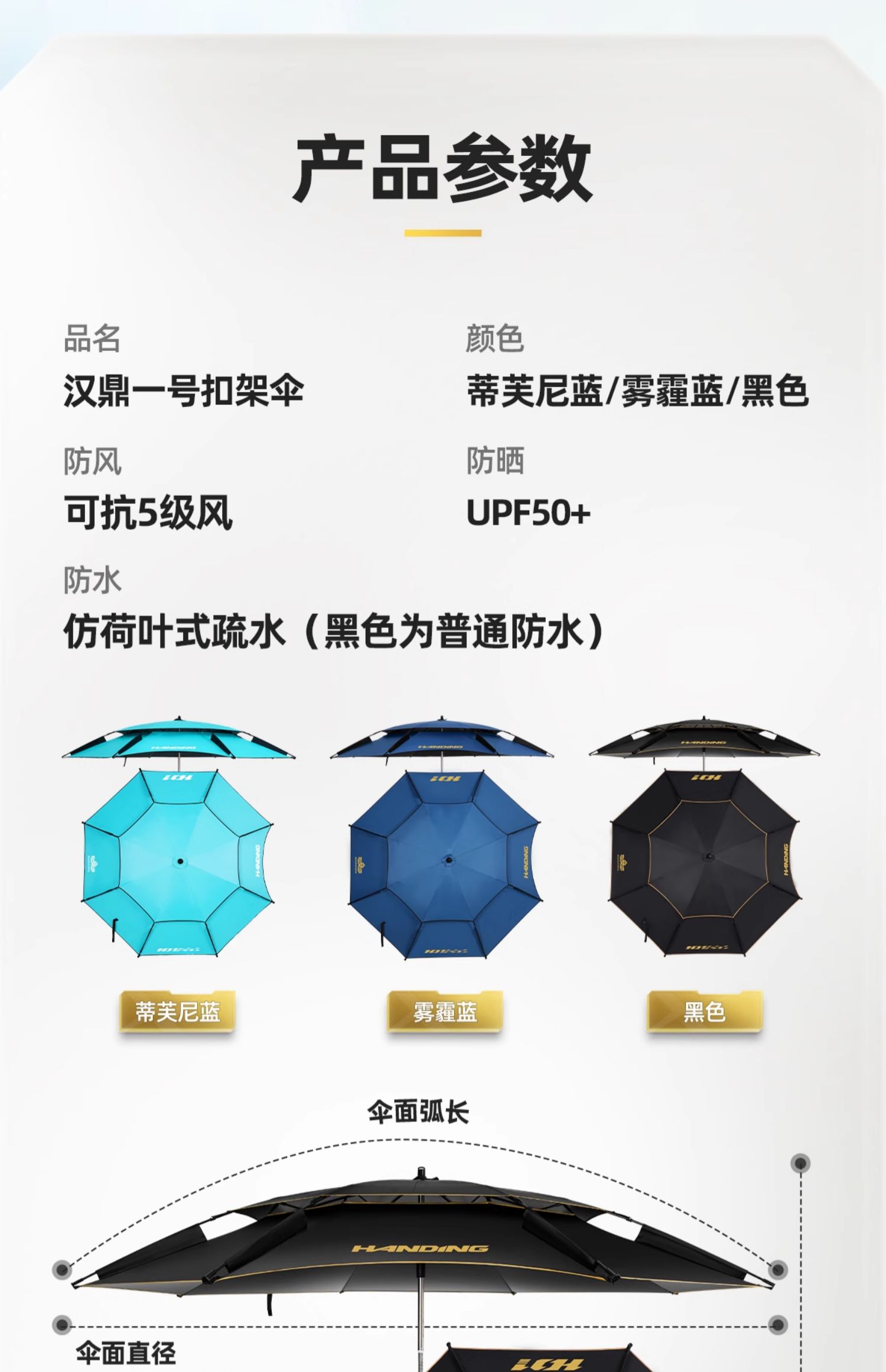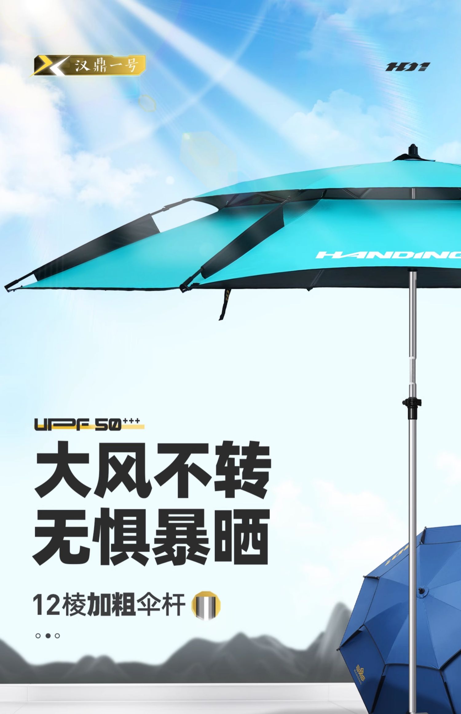 汉鼎一号钓鱼伞防爆雨遮阳伞万向钓鱼扣架加厚黑胶大钓伞雨垂钓伞