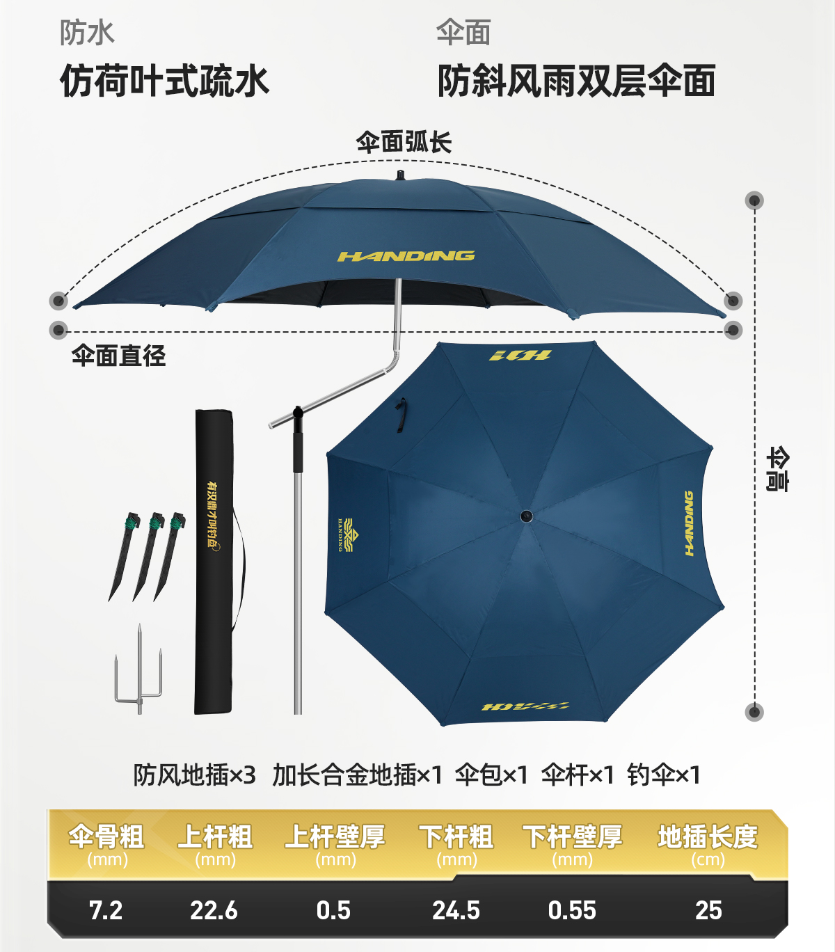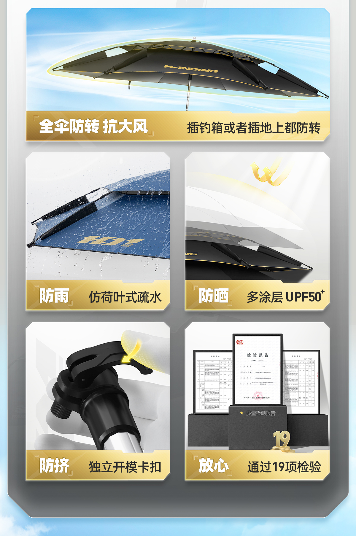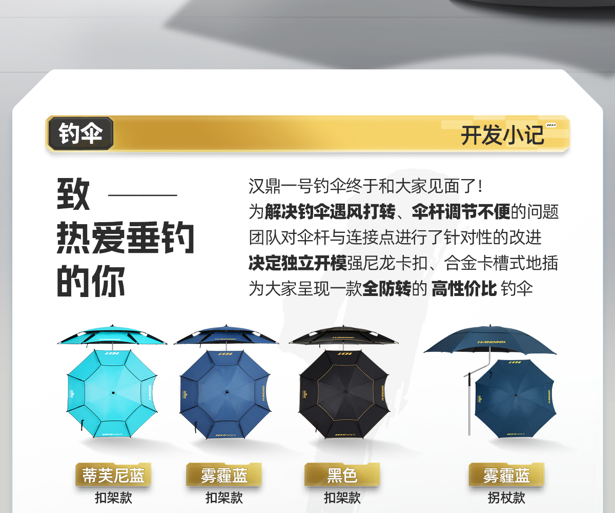汉鼎一号钓鱼伞防爆雨遮阳伞万向钓鱼扣架加厚黑胶大钓伞雨垂钓伞