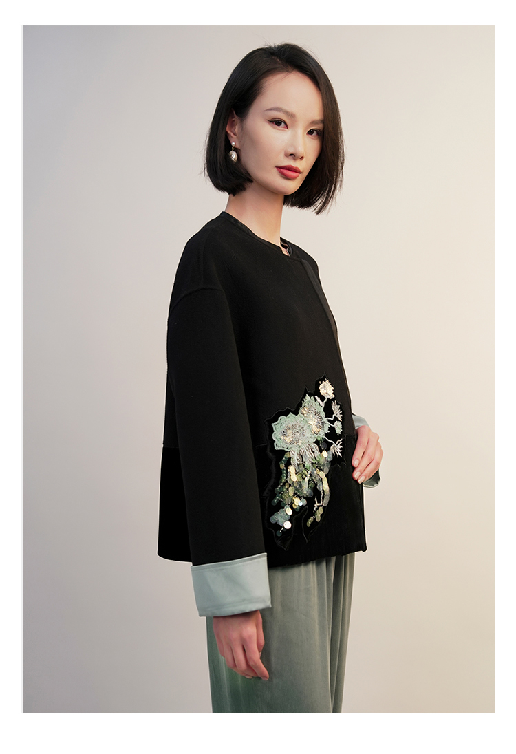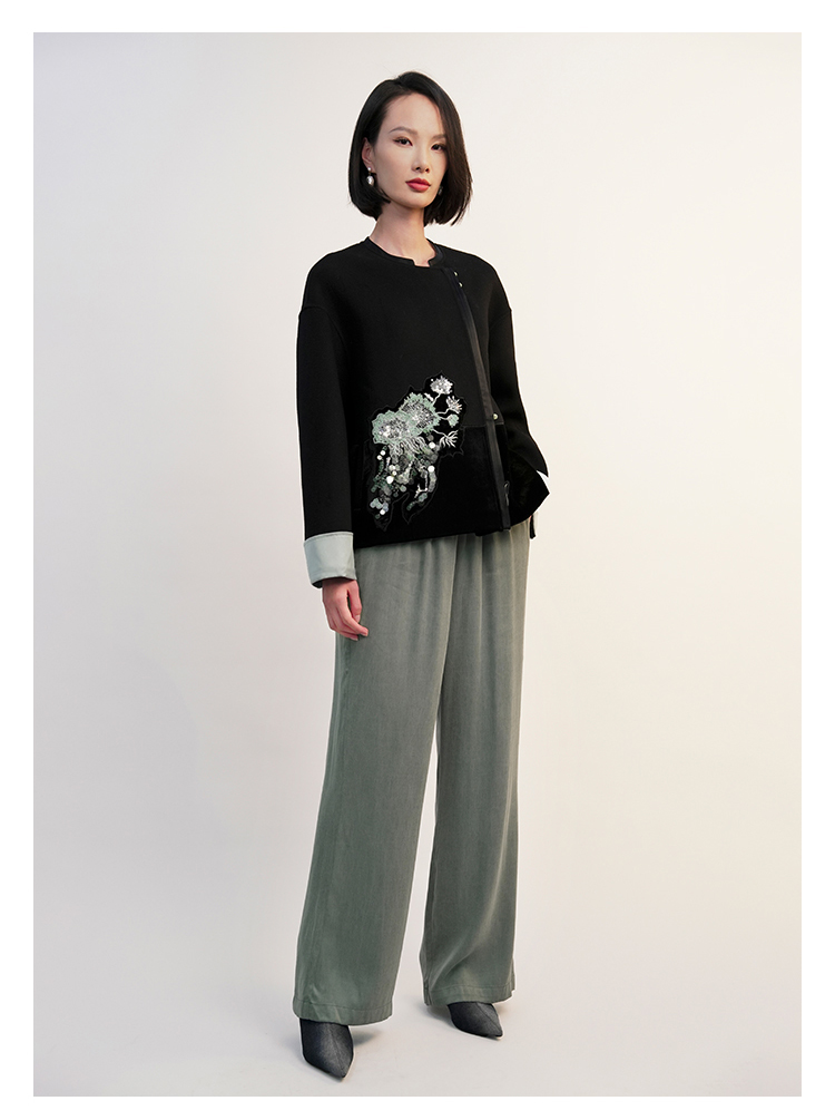 郭培成衣RSG「墨隐青棠」新中式丝绒拼接刺绣短上衣2025秋冬新品