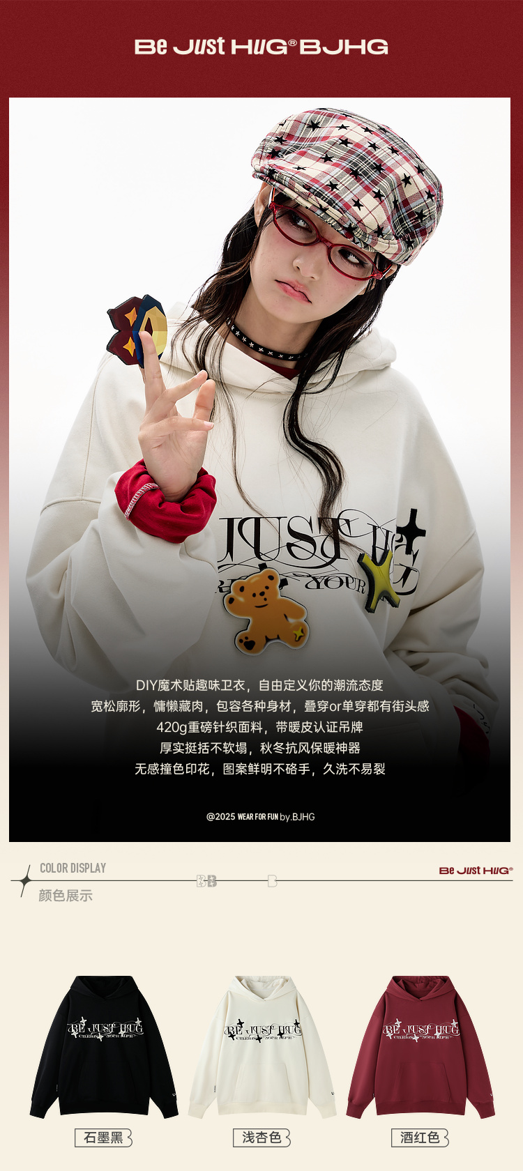 BJHG不计后果贴贴连帽卫衣男款秋季美式潮牌宽松暖皮恒温情侣上衣
