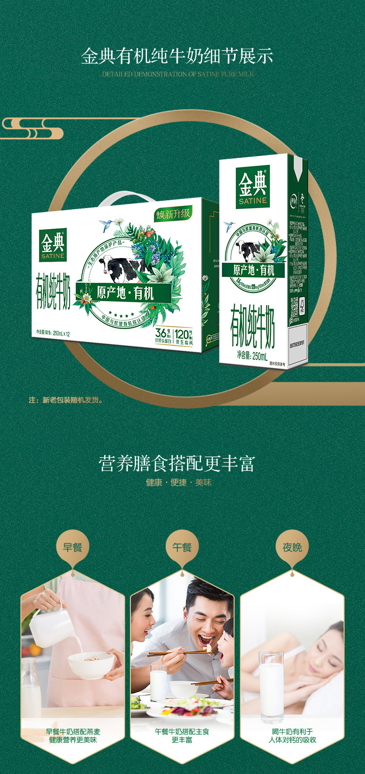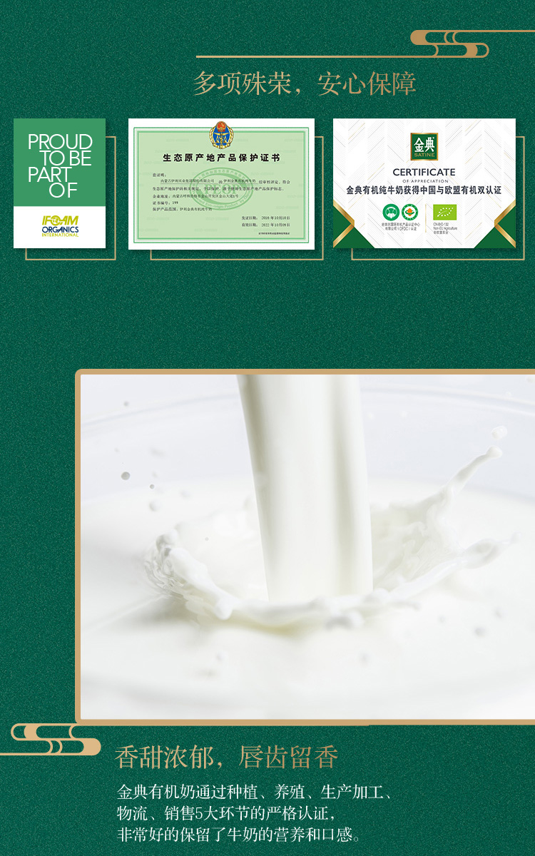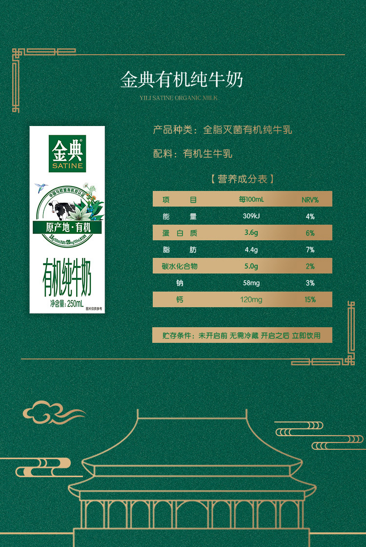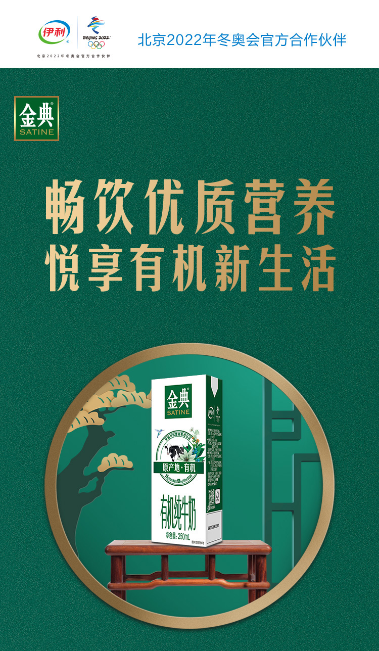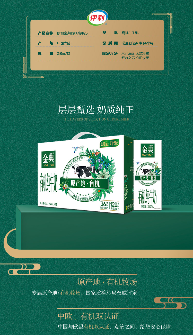 金典有机纯牛奶 250ml*16盒 整箱 有机牧场 营养 早餐奶 伊利 包邮