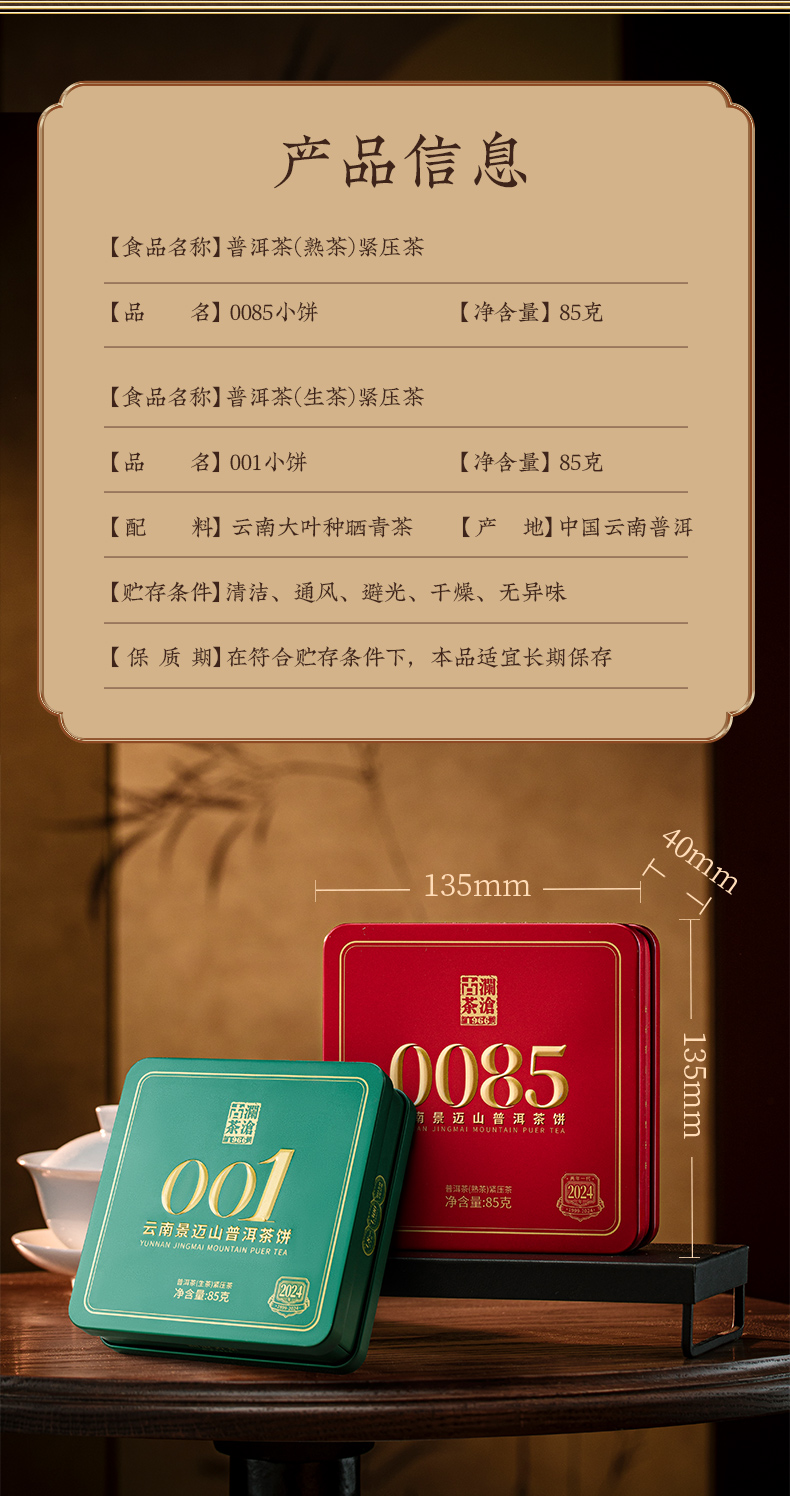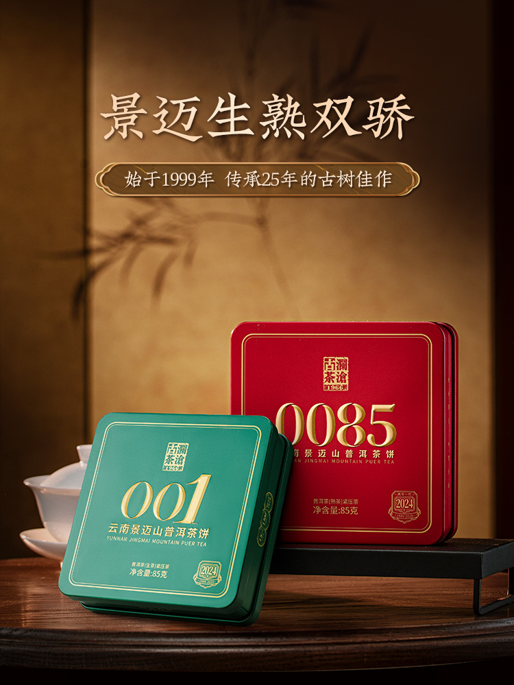 澜沧古茶2024年景迈001小胖饼85g+景迈0085小胖饼85g景迈古树普洱茶生茶熟茶组合170g(85g*2)