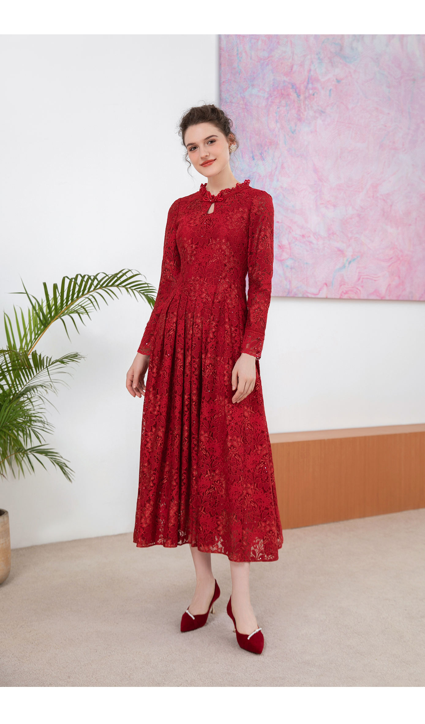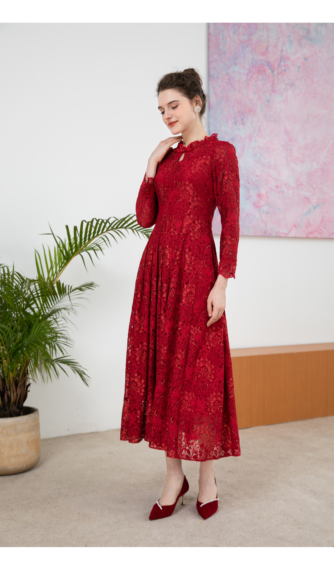 司歌蕾丝连衣裙喜庆端庄长裙A901024X