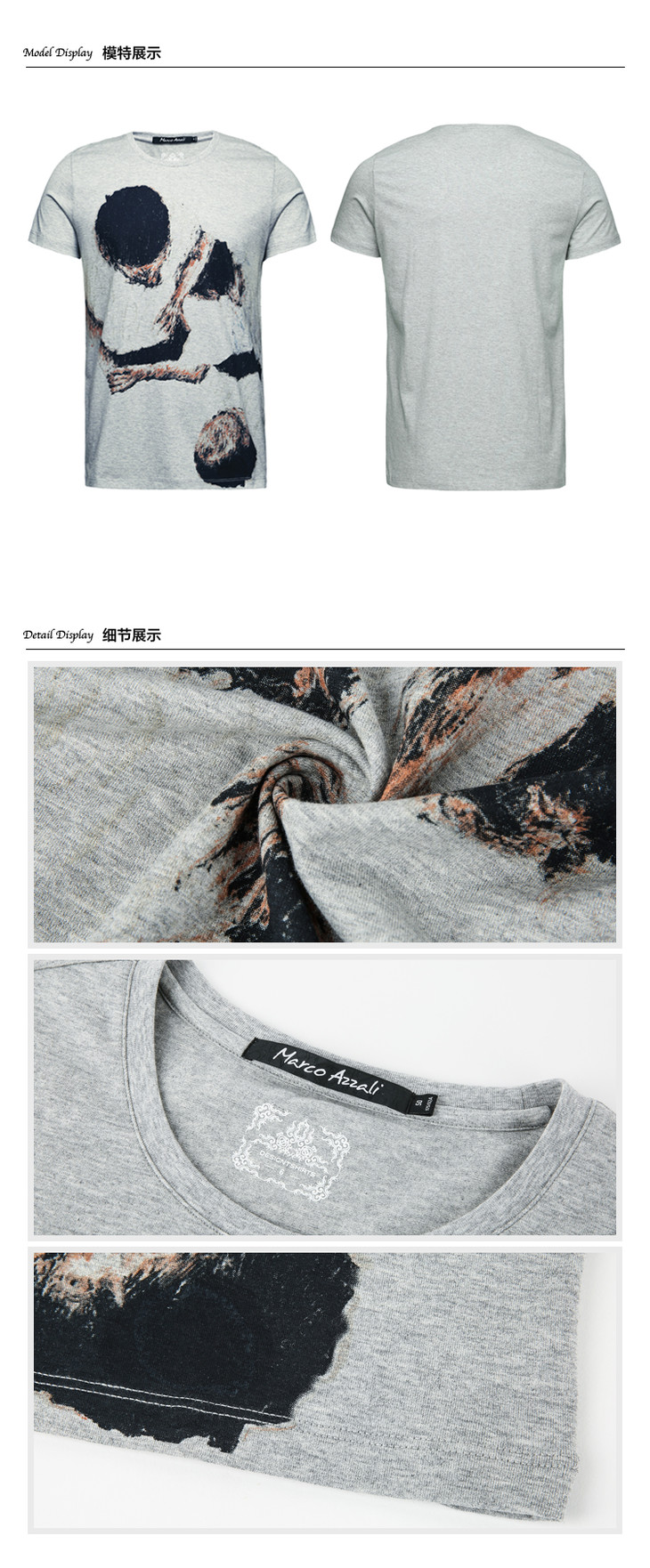Marco Azzali 灰色印花圆领T恤 T3829400
