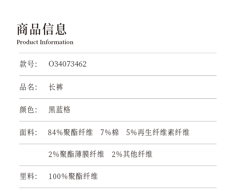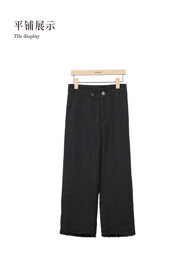 oldcolour黑色格子休闲裤秋季新款直筒宽松复古长裤女O34073462