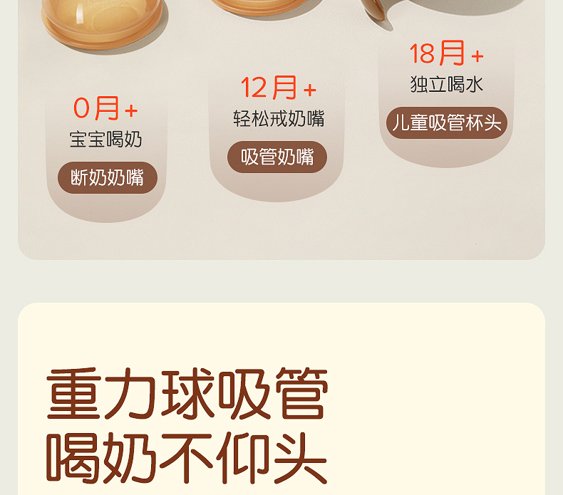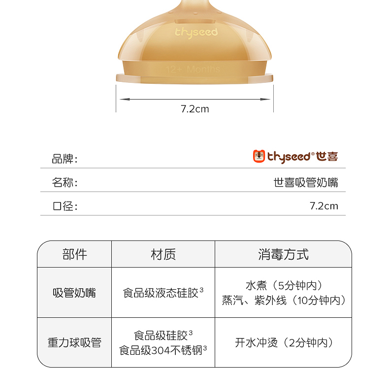 世喜 吸管奶嘴吸管杯儿童喝奶宽口径耐摔防呛吸管奶瓶配件奶嘴 12月+
