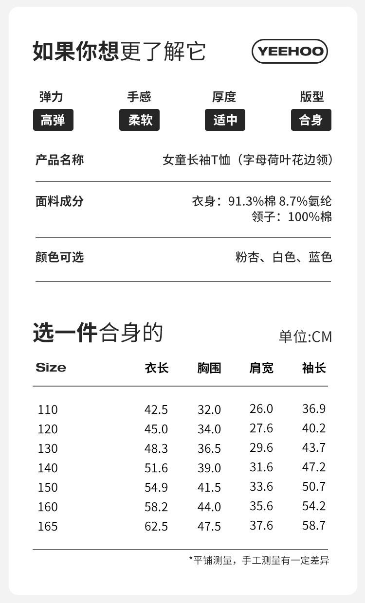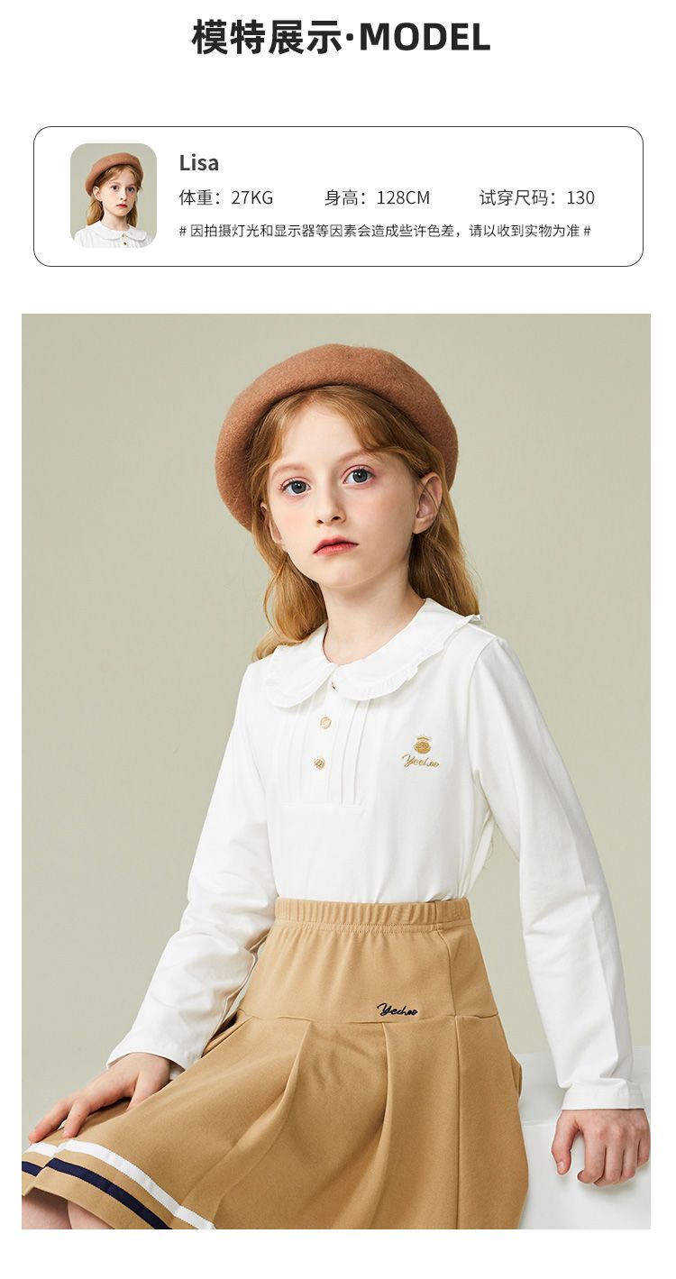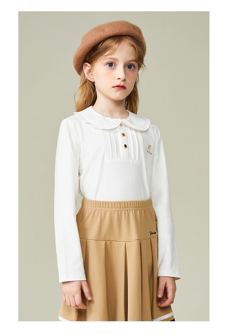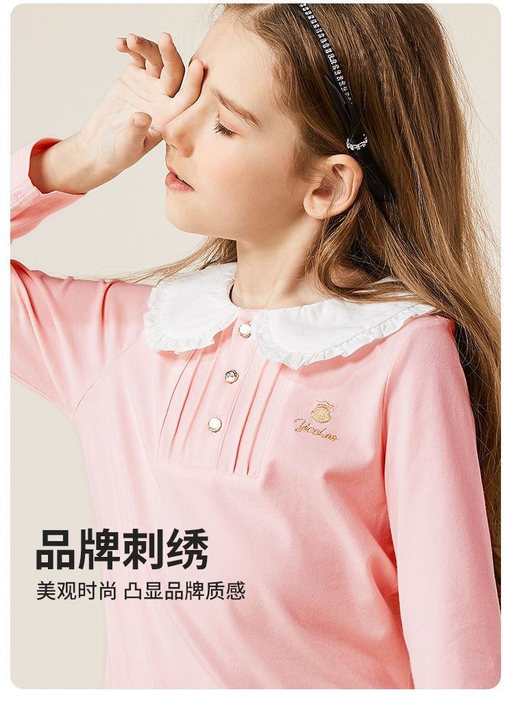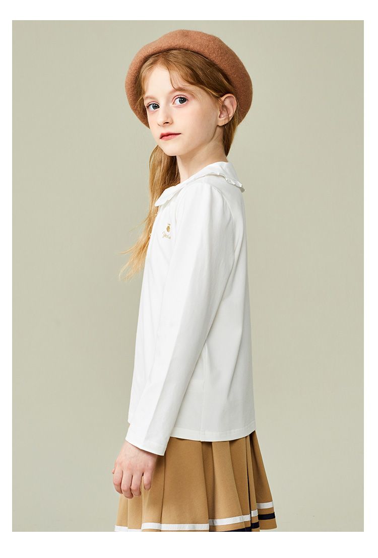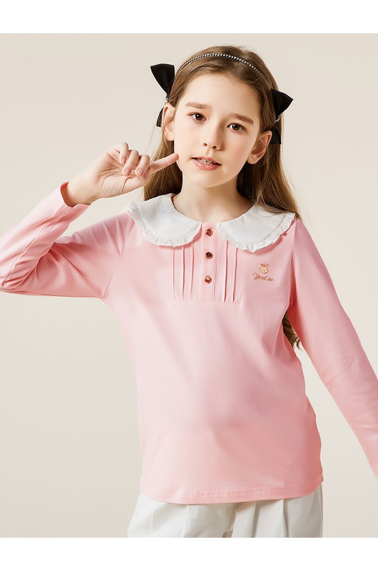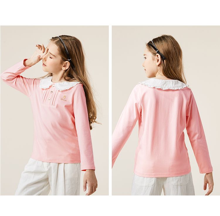 【英氏】【110-165】女童春秋款荷叶花边领甜美长袖T恤