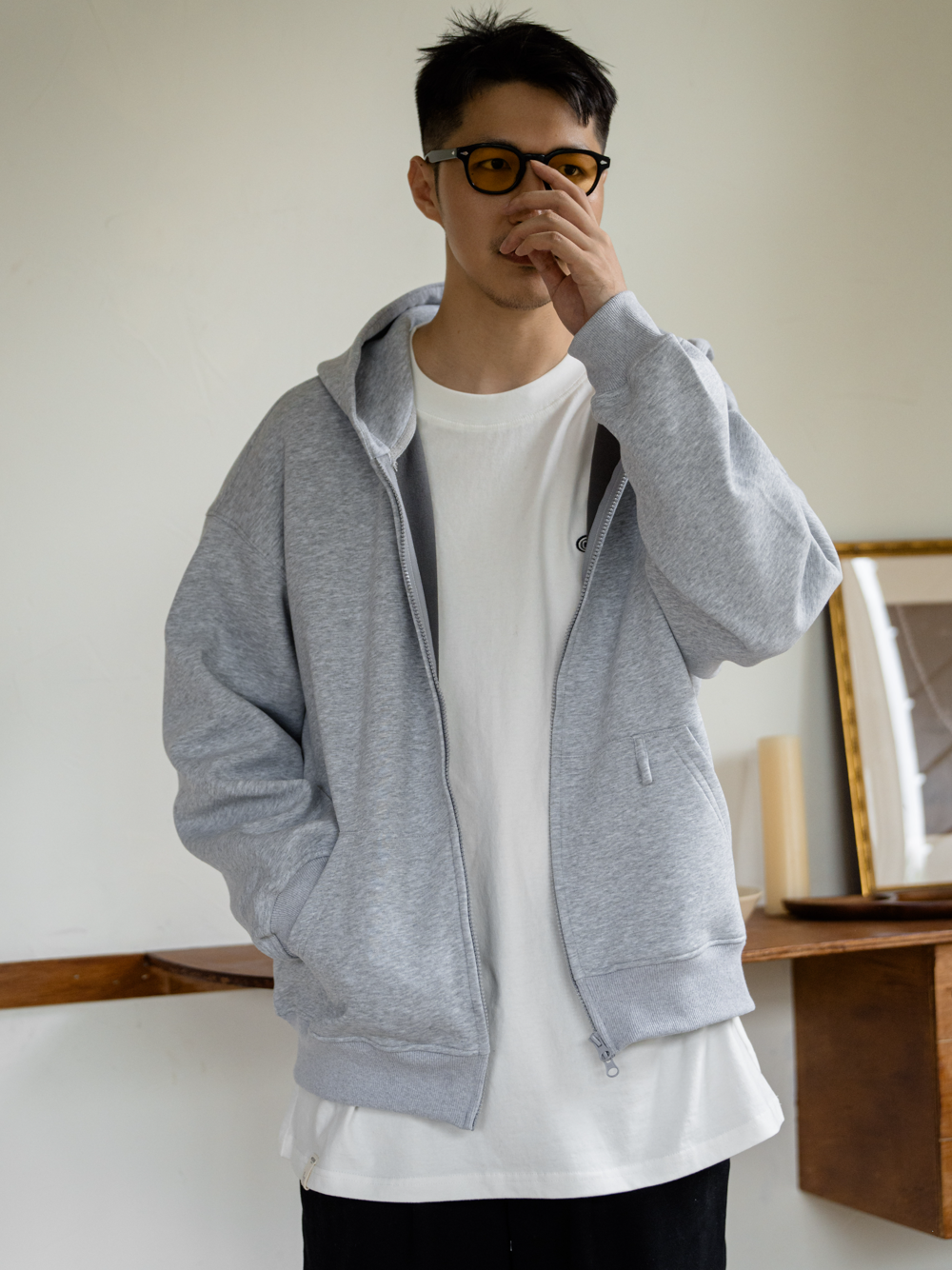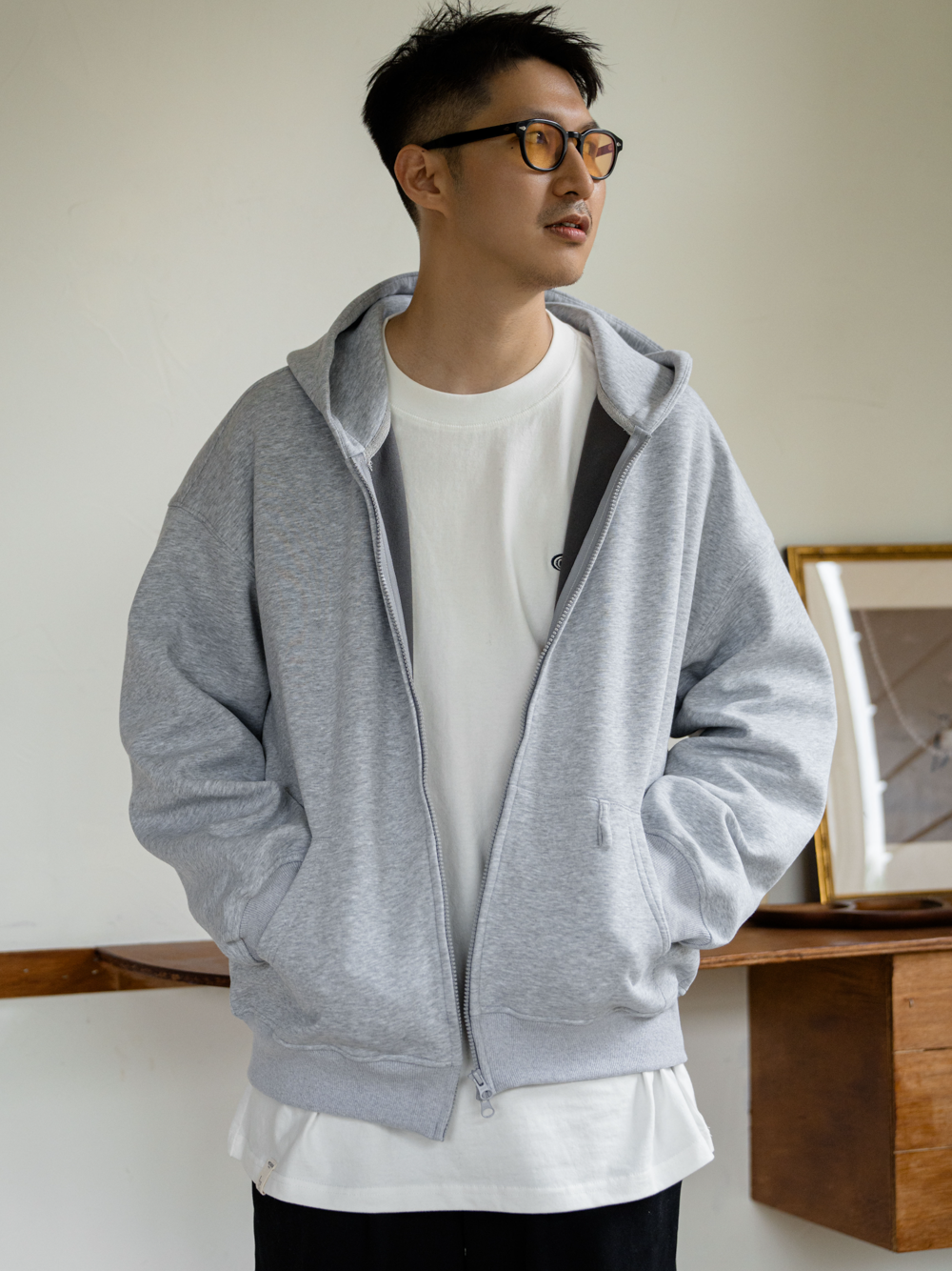 GYOZA PASTA/GP25AW-C055/双头拉链帽衫开衫连帽卫衣外套