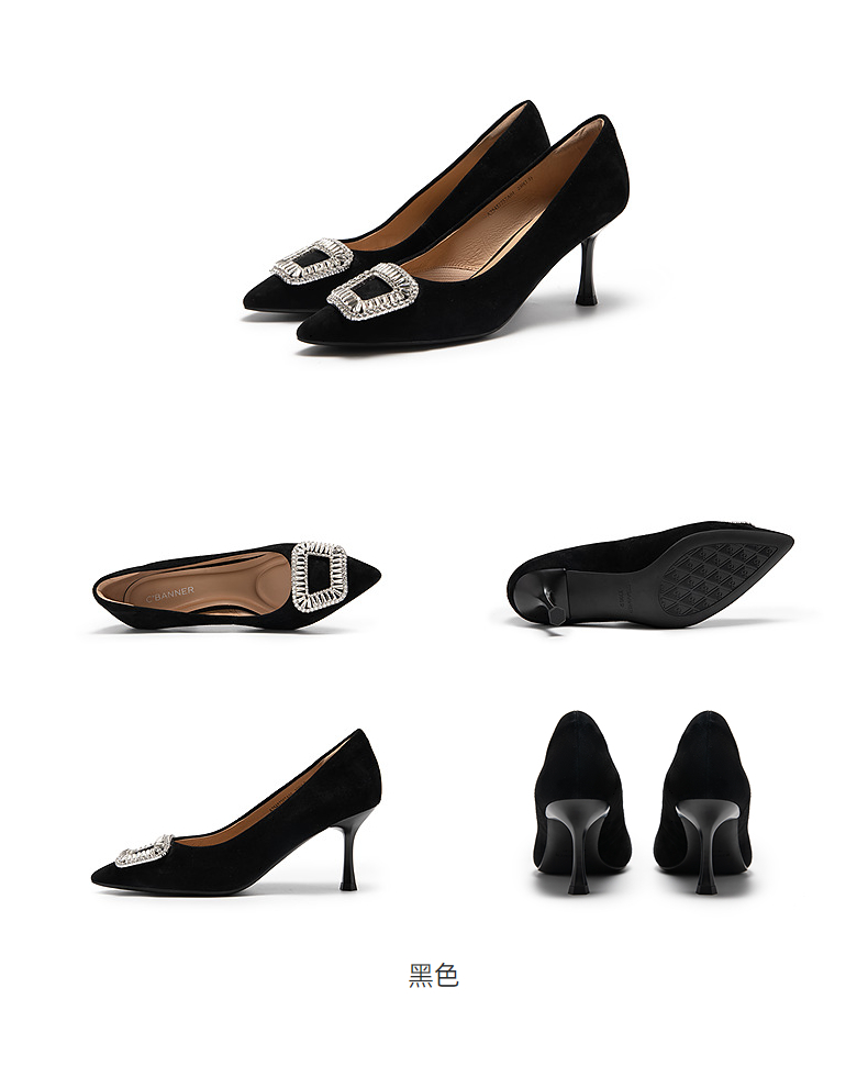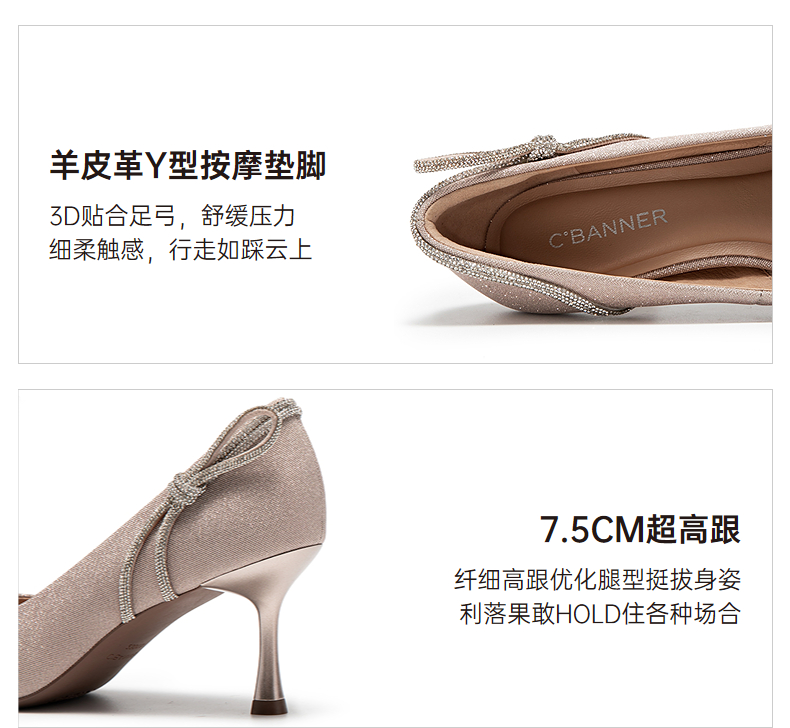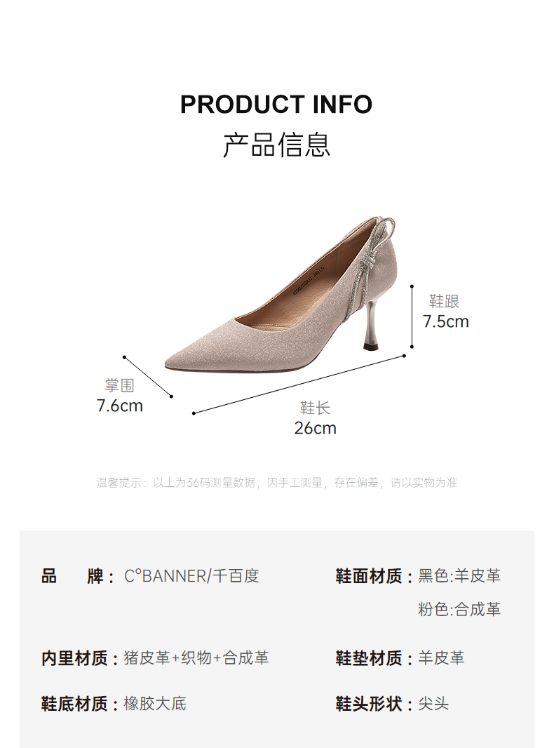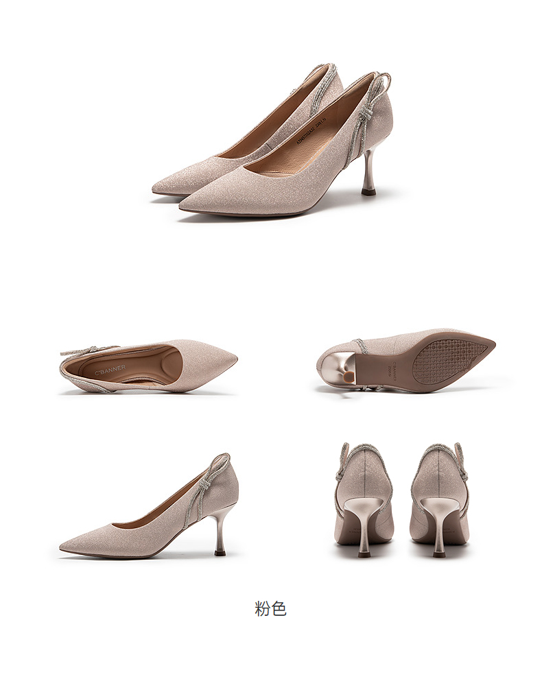 千百度中跟裸色浅口单鞋女春季尖头增高显瘦通勤小皮鞋A24106016