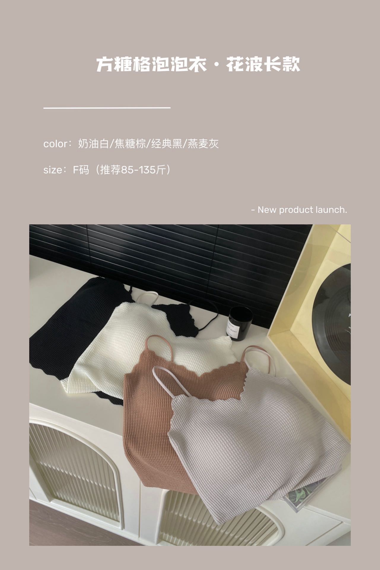 老米优品/ 开启浪漫春日《方糖格泡泡衣·花波长款吊带背心》自带胸垫免文胸!让人拒绝不了的软弹显高级!爱了!! DD240304A