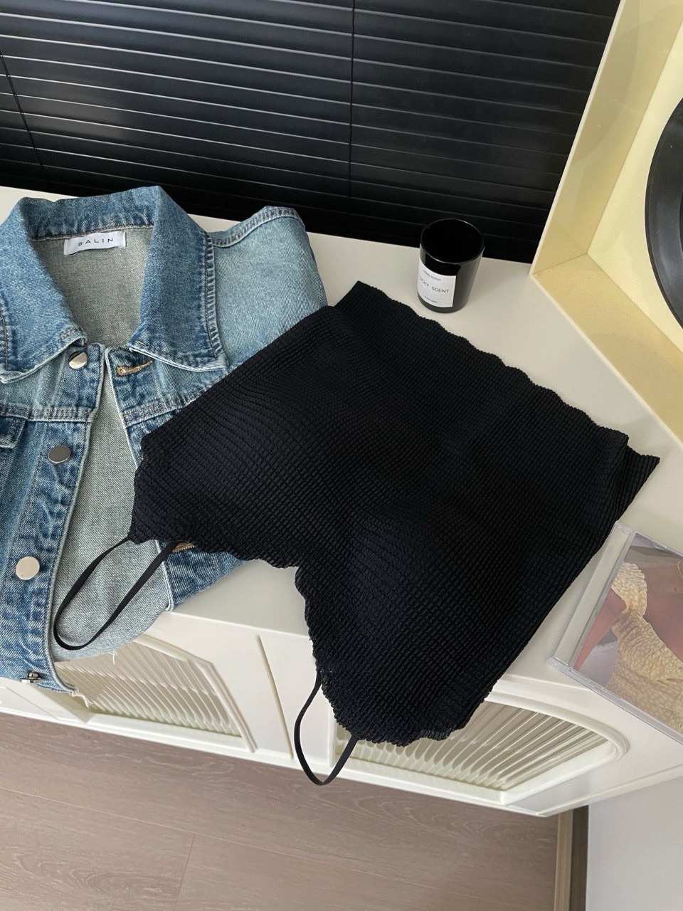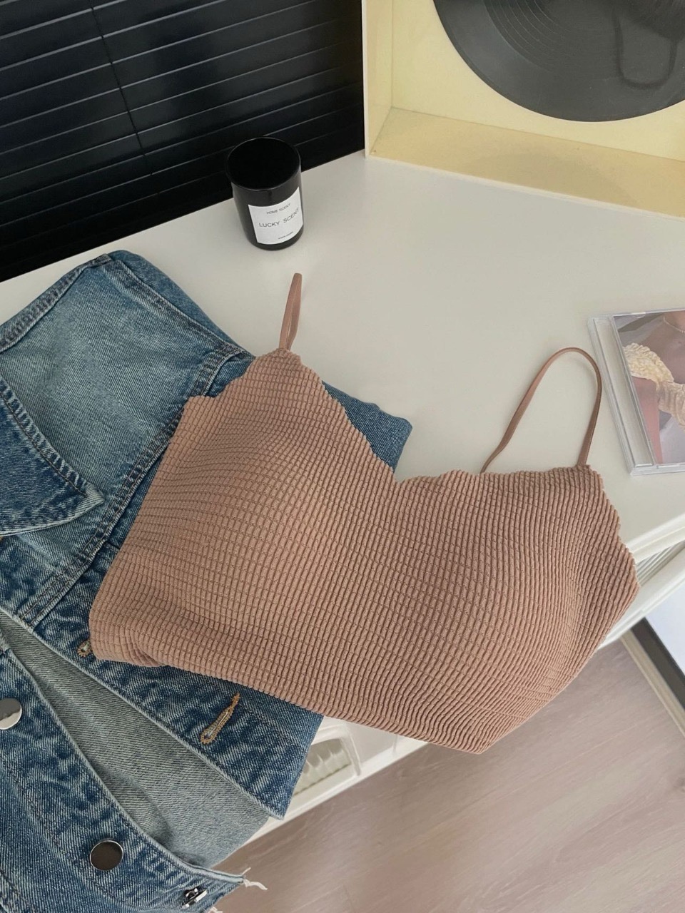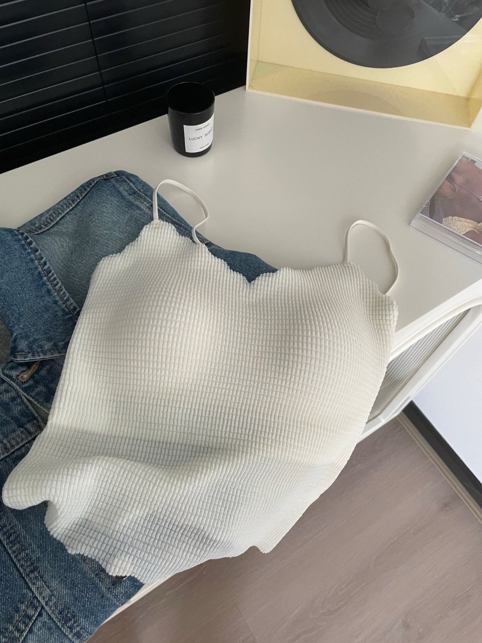 奶呼呼的小吊带,,搭配简约的牛仔裤一身自在随性的日常穿搭就搞定啦~