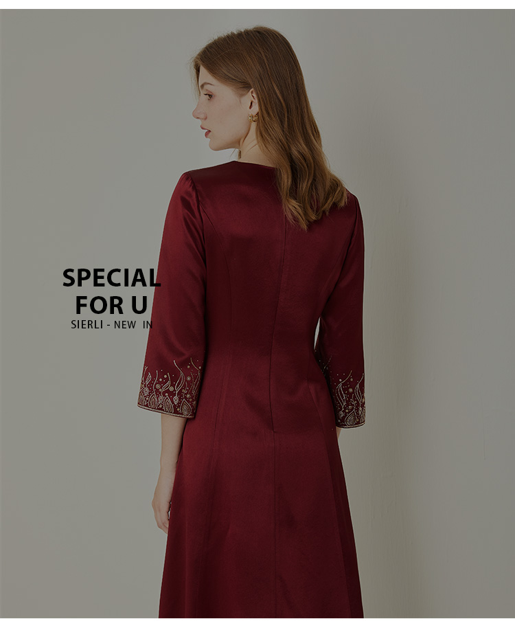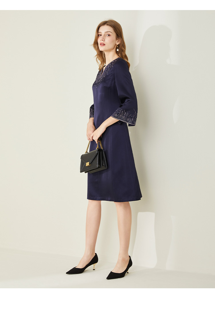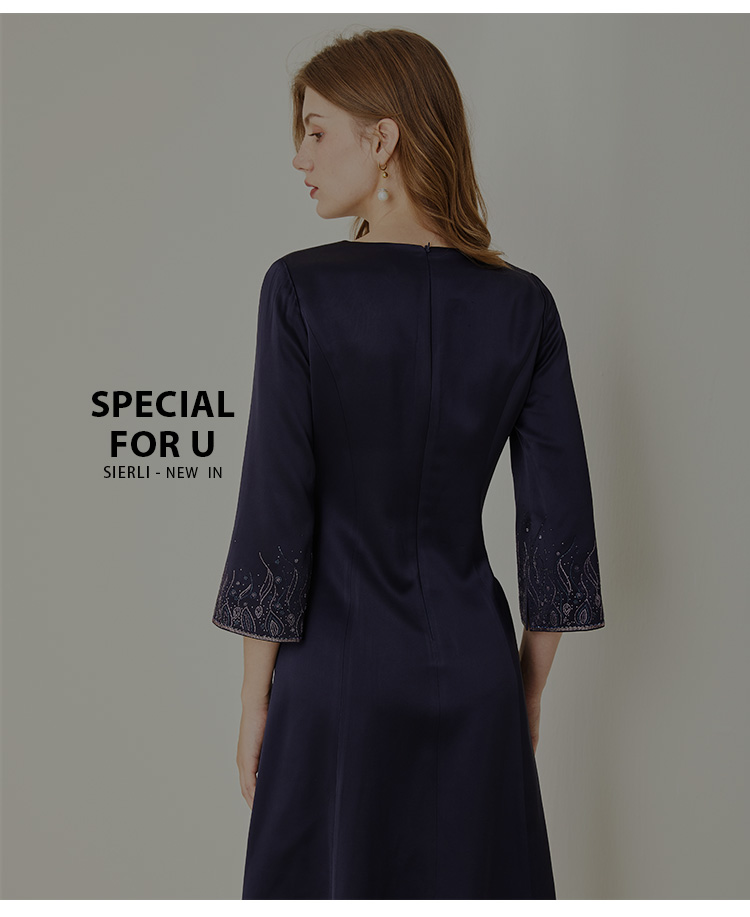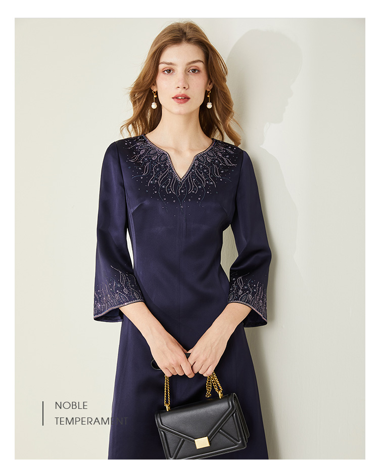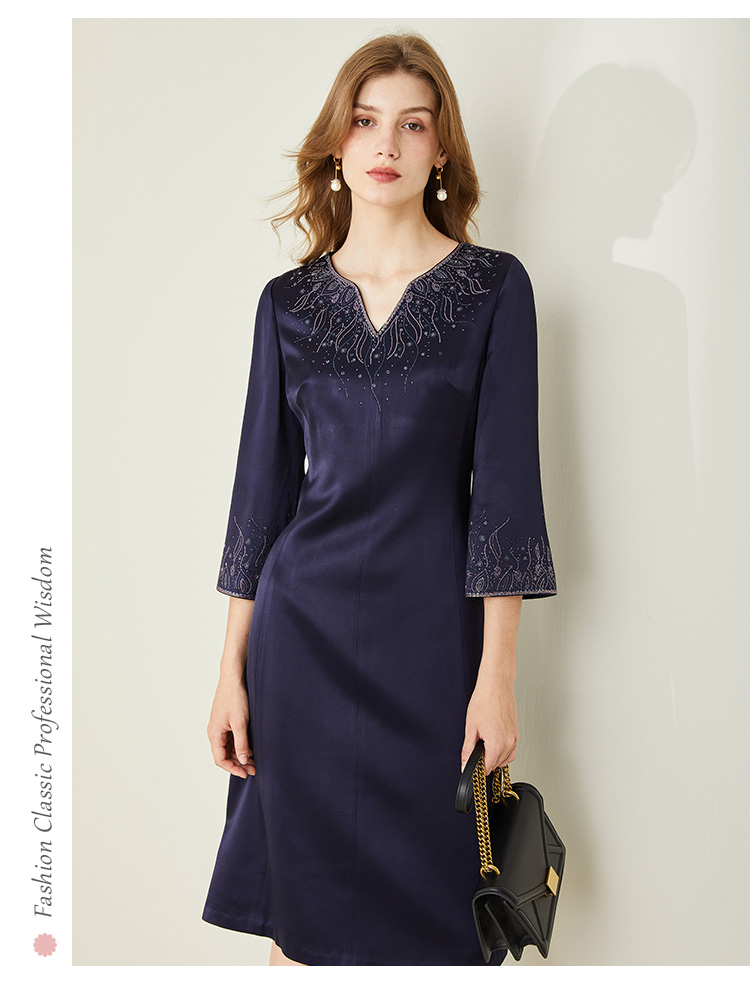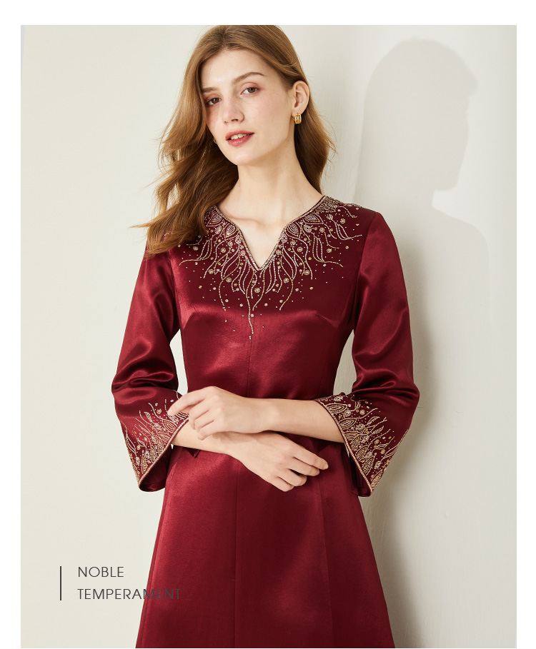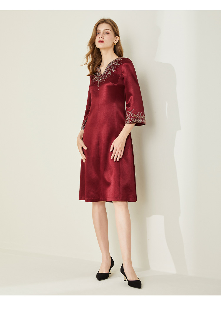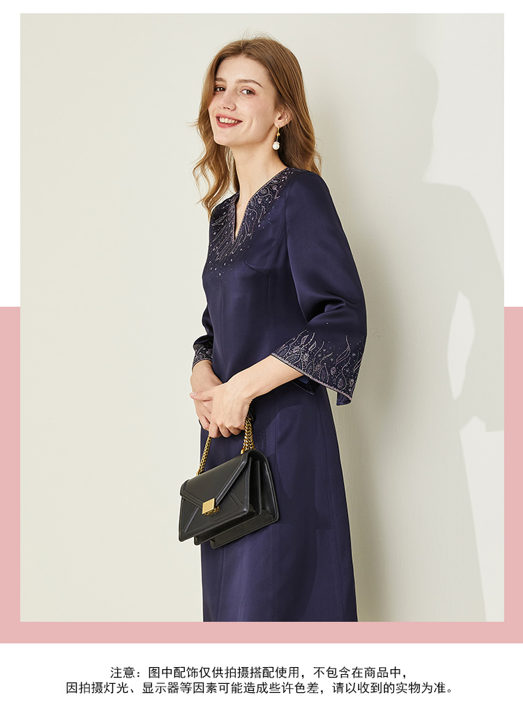 [LC851]斯尔丽瑟俪2022年春上新优雅小V领烫钻合身及膝礼服连衣裙