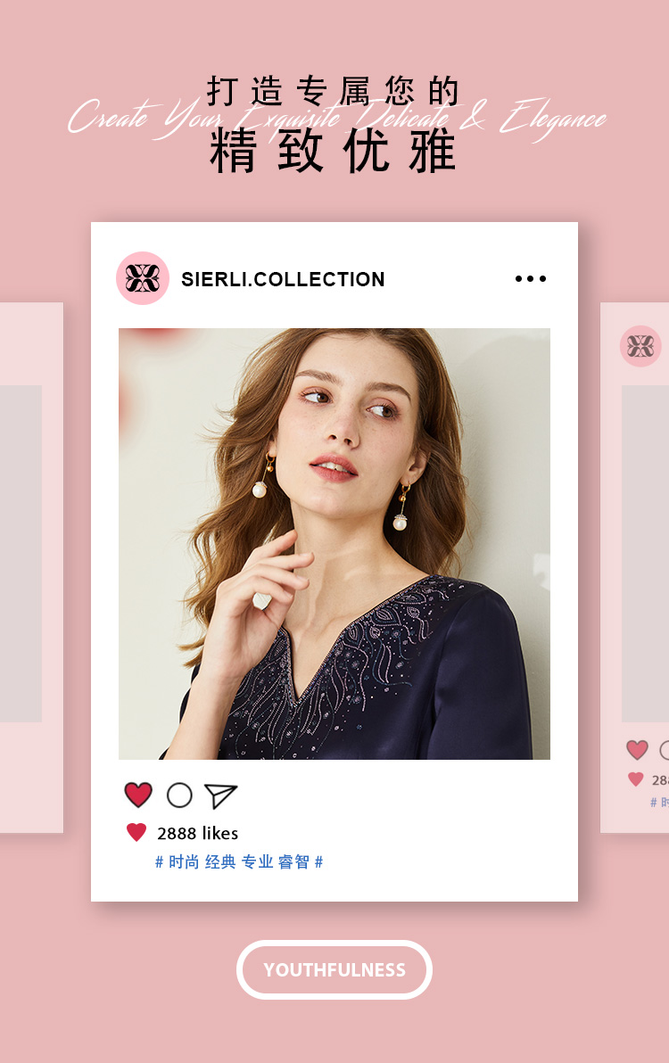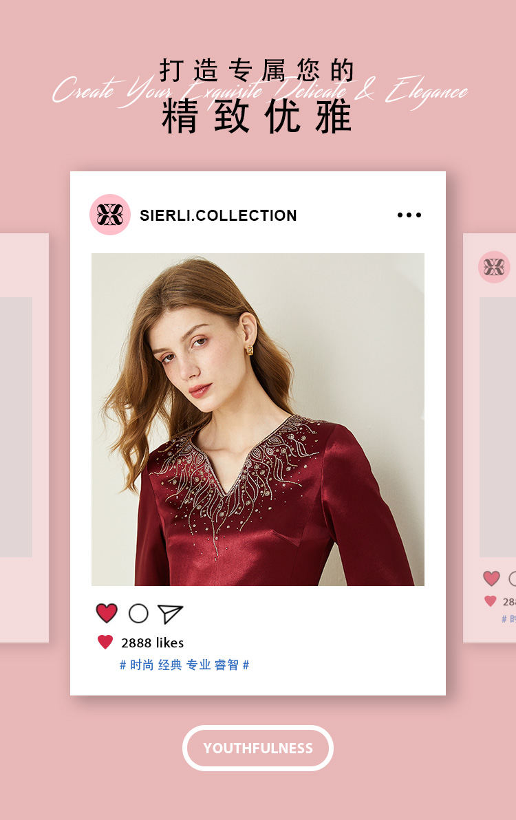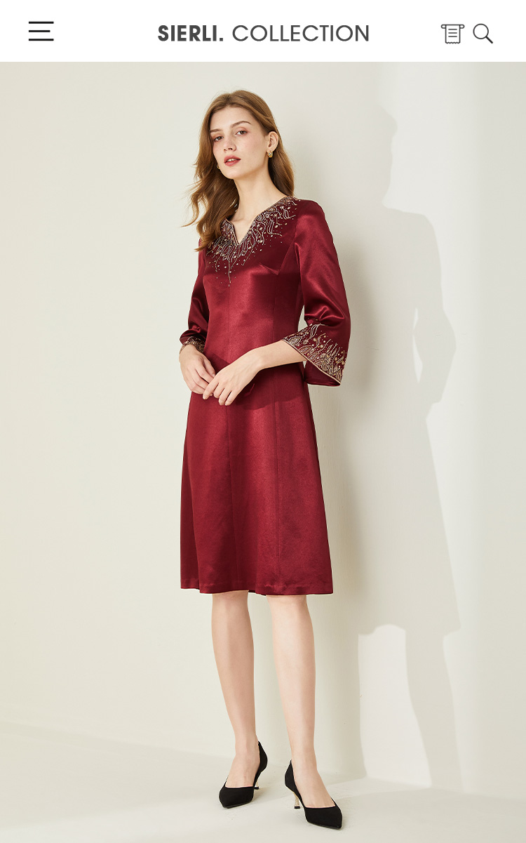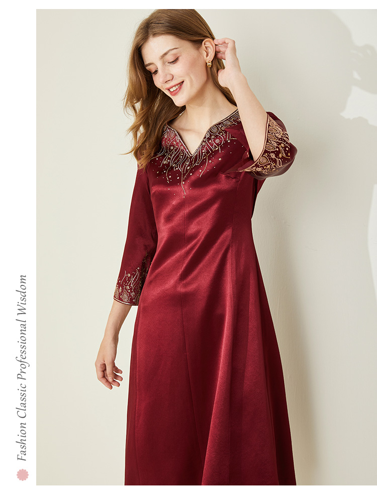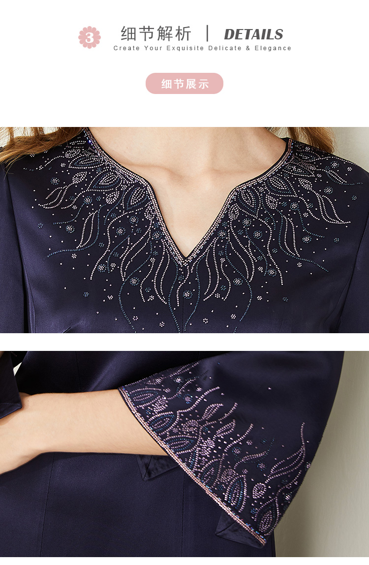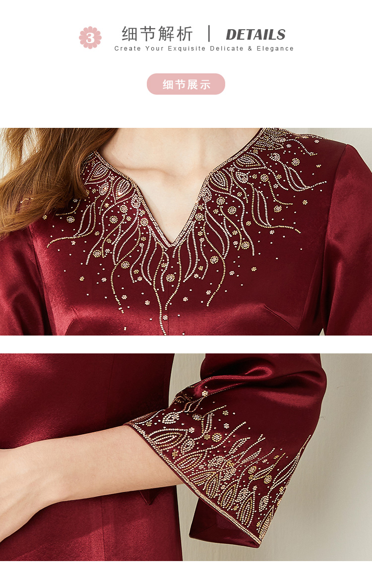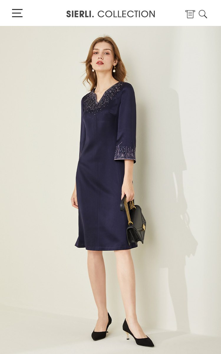 [LC851]斯尔丽瑟俪2022年春上新优雅小V领烫钻合身及膝礼服连衣裙