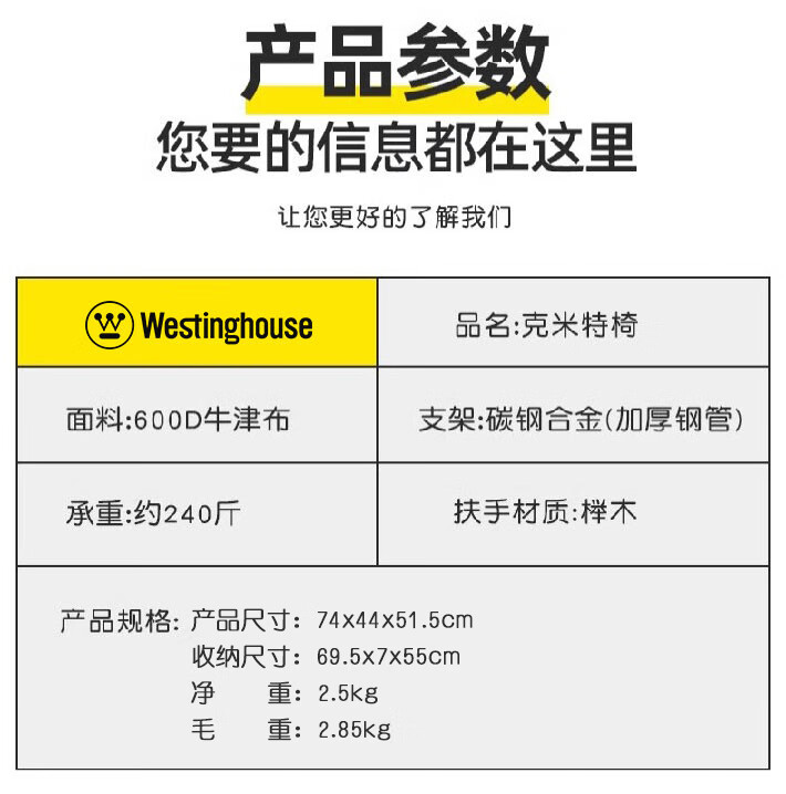 Westinghouse西屋便携可折叠克米特椅MN05B