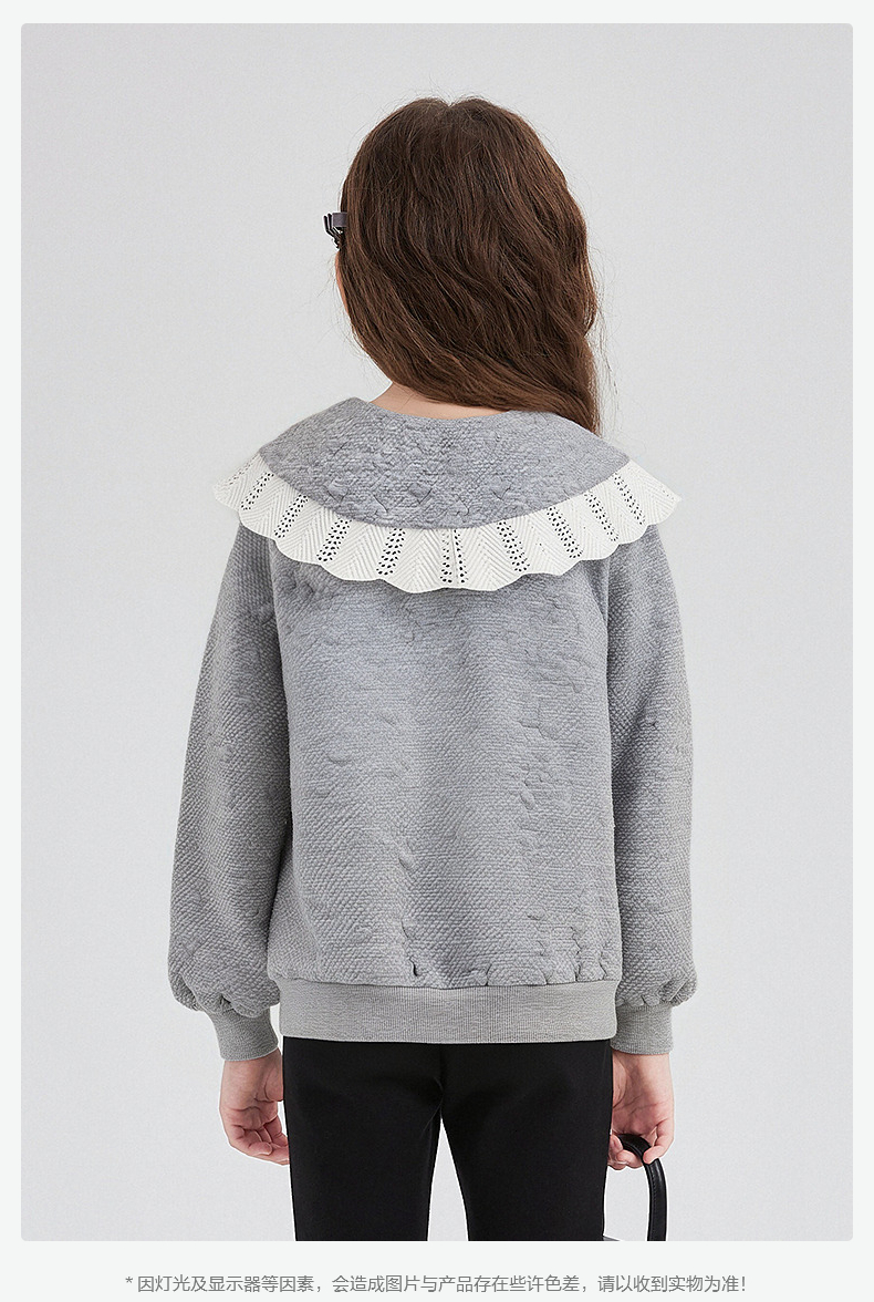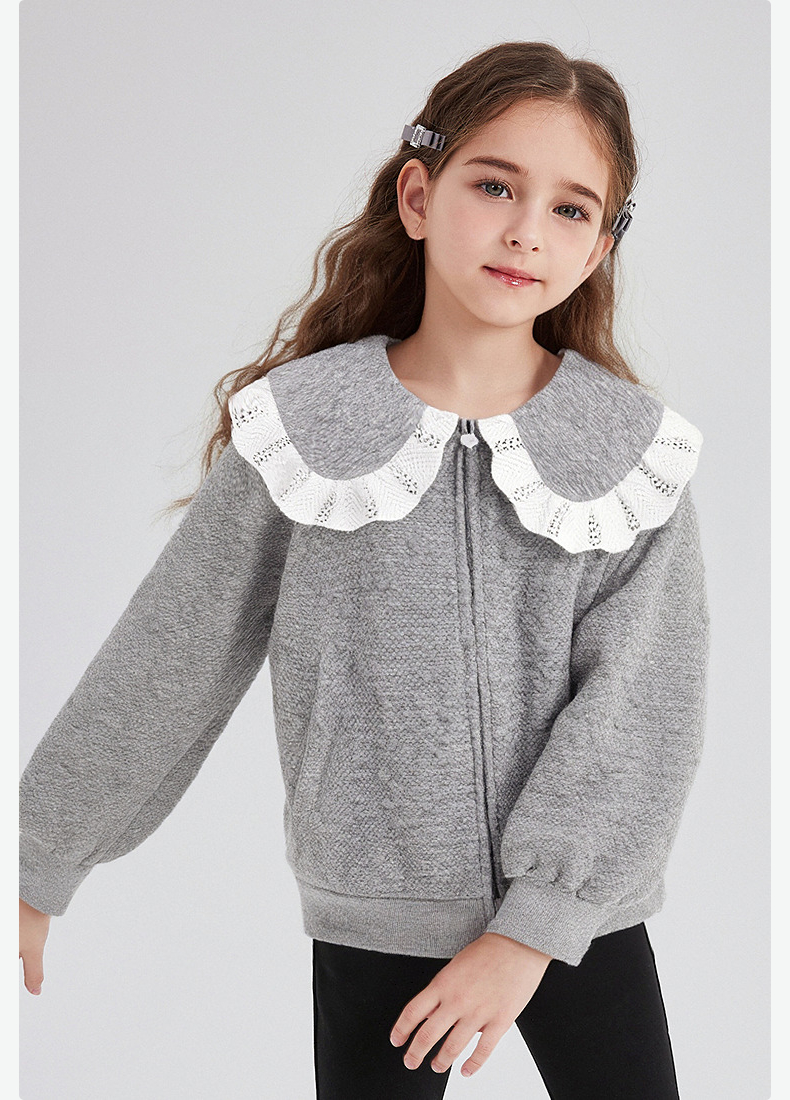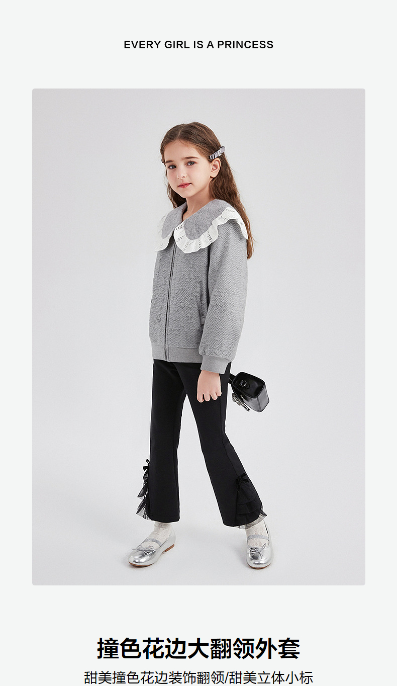 笛莎Deesha 童装女童外套2025秋新款女童撞色花边大翻领外套