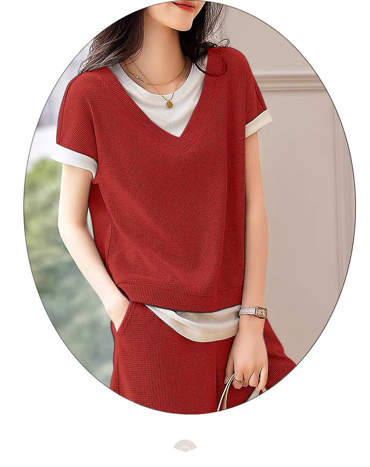 【YUETONGWEN 华夫格肌理简约套装】M-3XL,肌理感撞色,简约百搭文艺,线条柔软显瘦,舒适感满满~