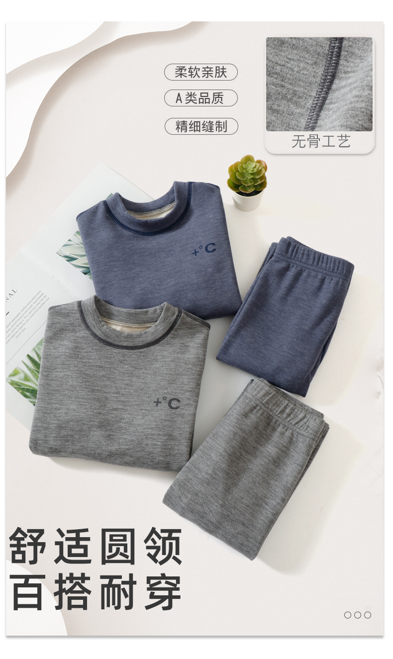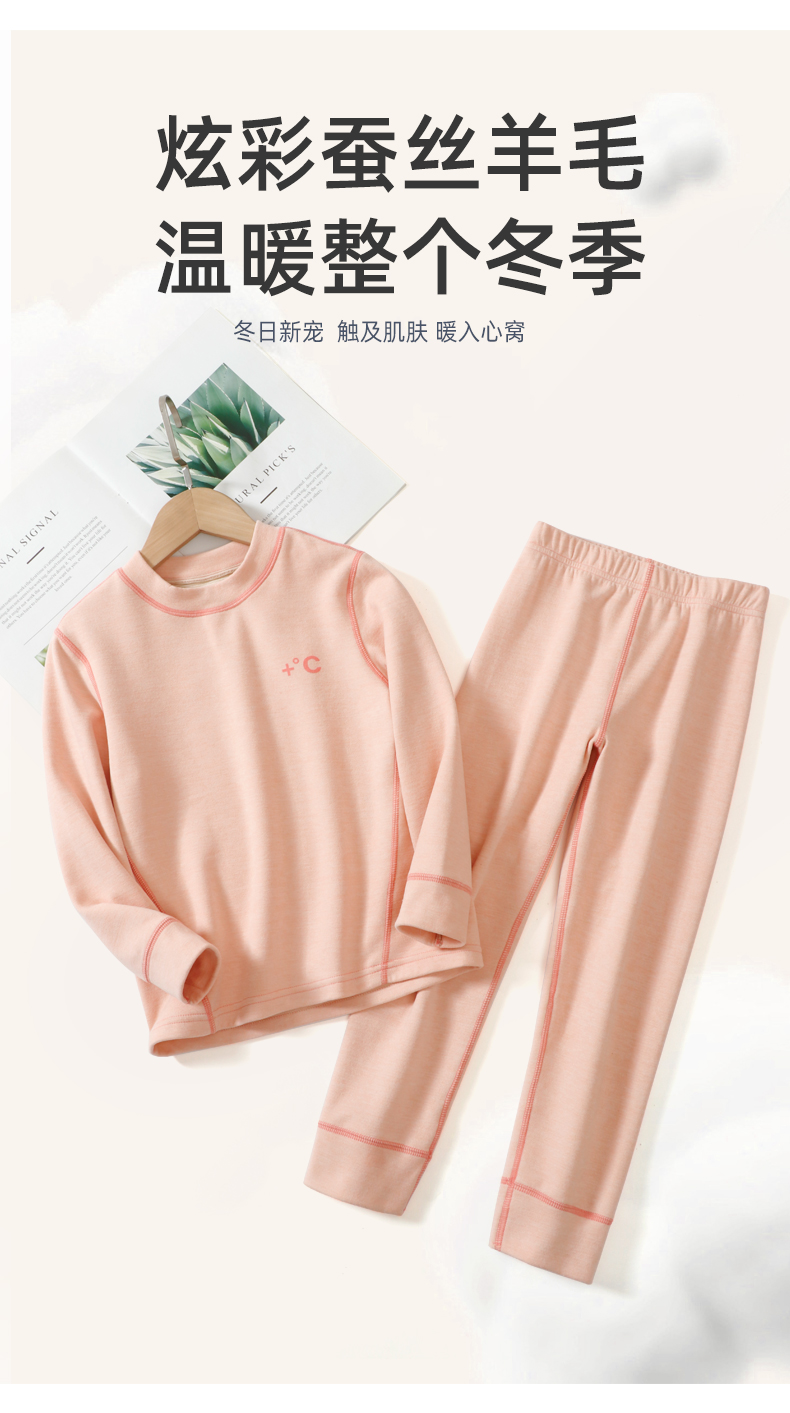 110-170秋冬立领蚕丝羊毛德绒面料 长袖内衣套装