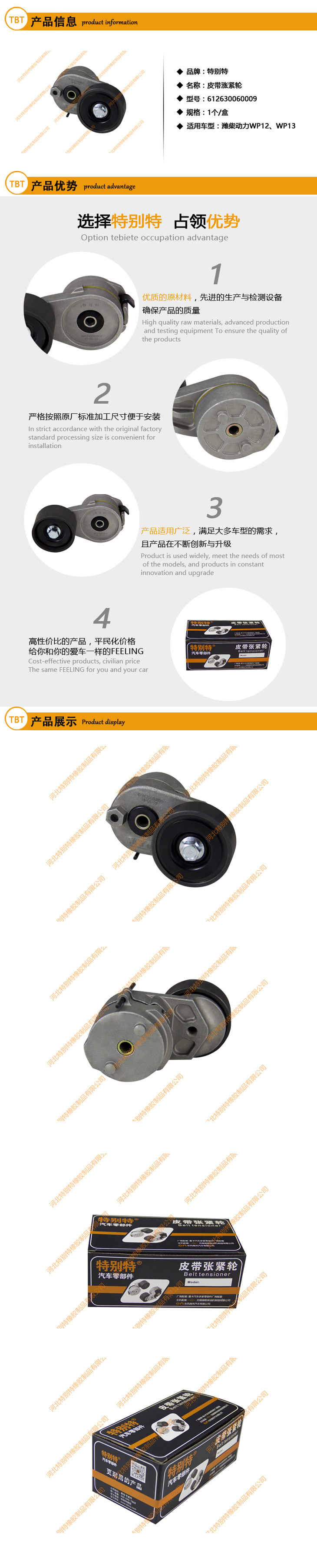 潍柴动力WP12张紧轮、WP13张紧轮 编码:612630060009(0847)华菱375马力、欧曼375马力、德龙375马力(适用6pk1399、6pk1425、6pk1420、61420、61399、61425)/潍柴动力WP12皮带张紧轮、WP13皮带张紧轮/潍柴动力WP12涨紧轮、WP13涨紧轮/潍柴动力WP12皮带涨紧轮、WP13皮带涨紧轮(0009)(0847) |