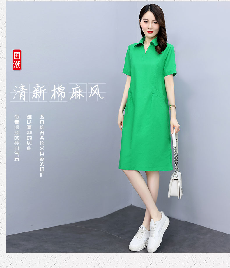 休闲气质,文艺棉麻宽松连衣裙HR-GJC6280