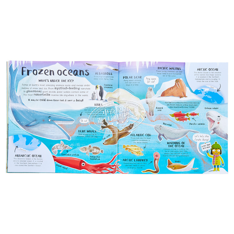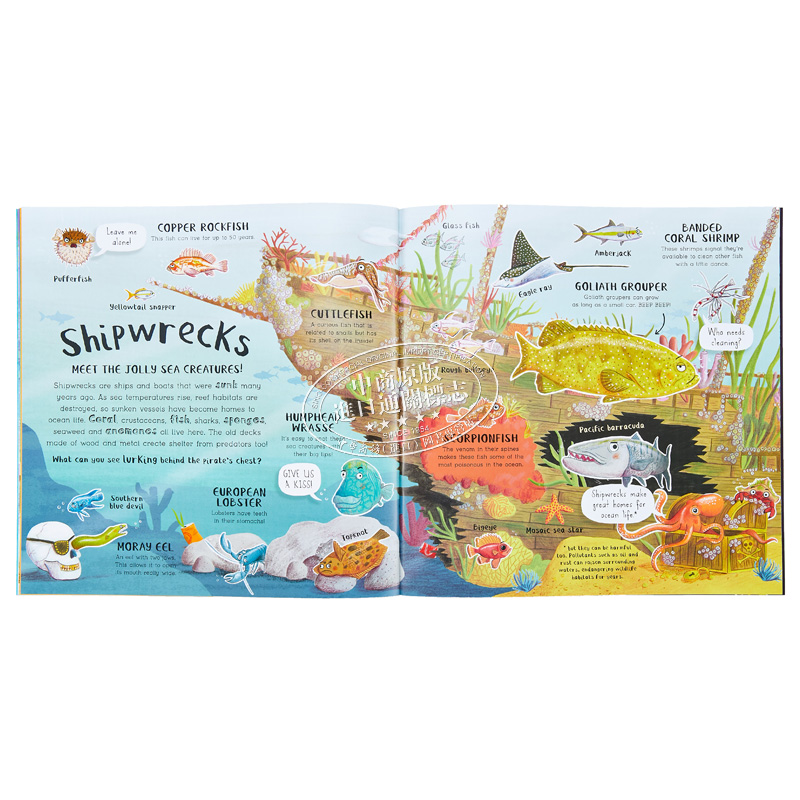 你知道龙虾把牙齿放在肚子里吗?或者你能在海底找到河流和湖泊?你知道海星没有大脑或血液吗?在每一页上探索我们海底世界的奇观,从珊瑚礁、鲨鱼和深海到沉船、奇怪的鱼和冰冻的海洋,有太多值得探索的地方!