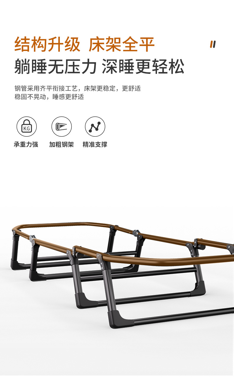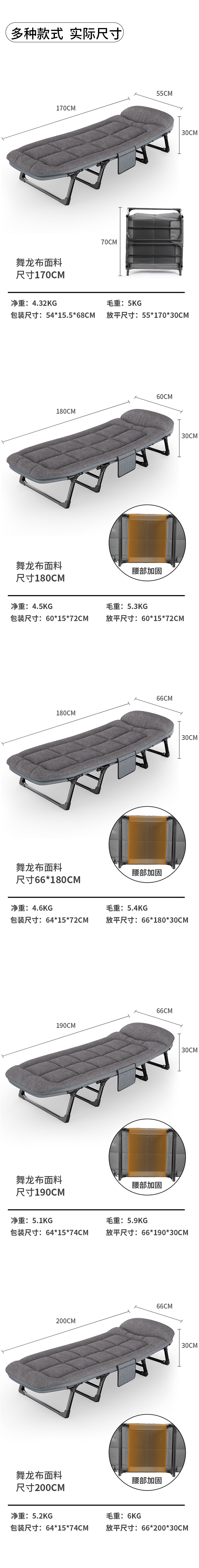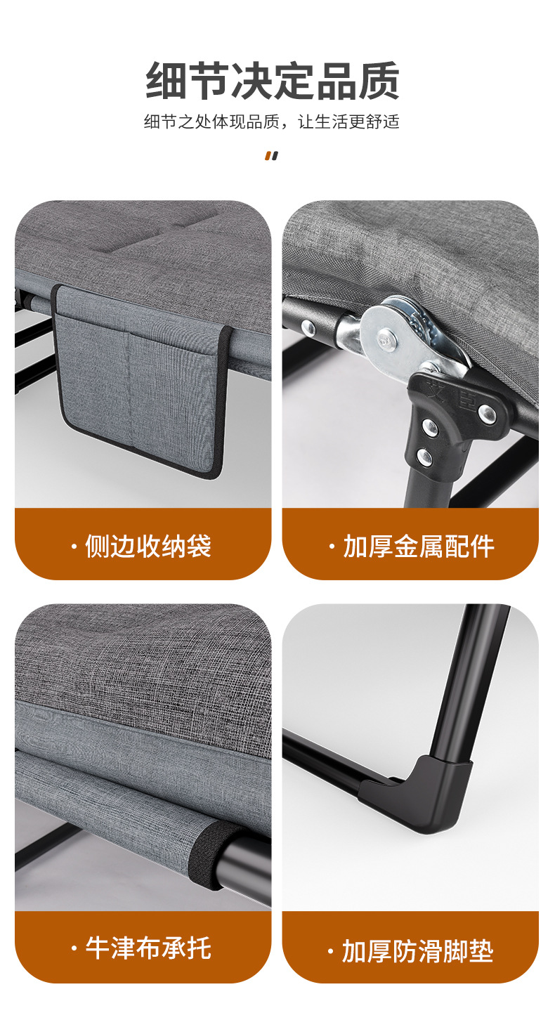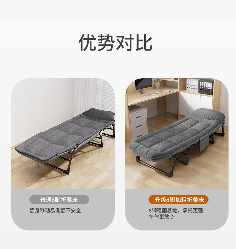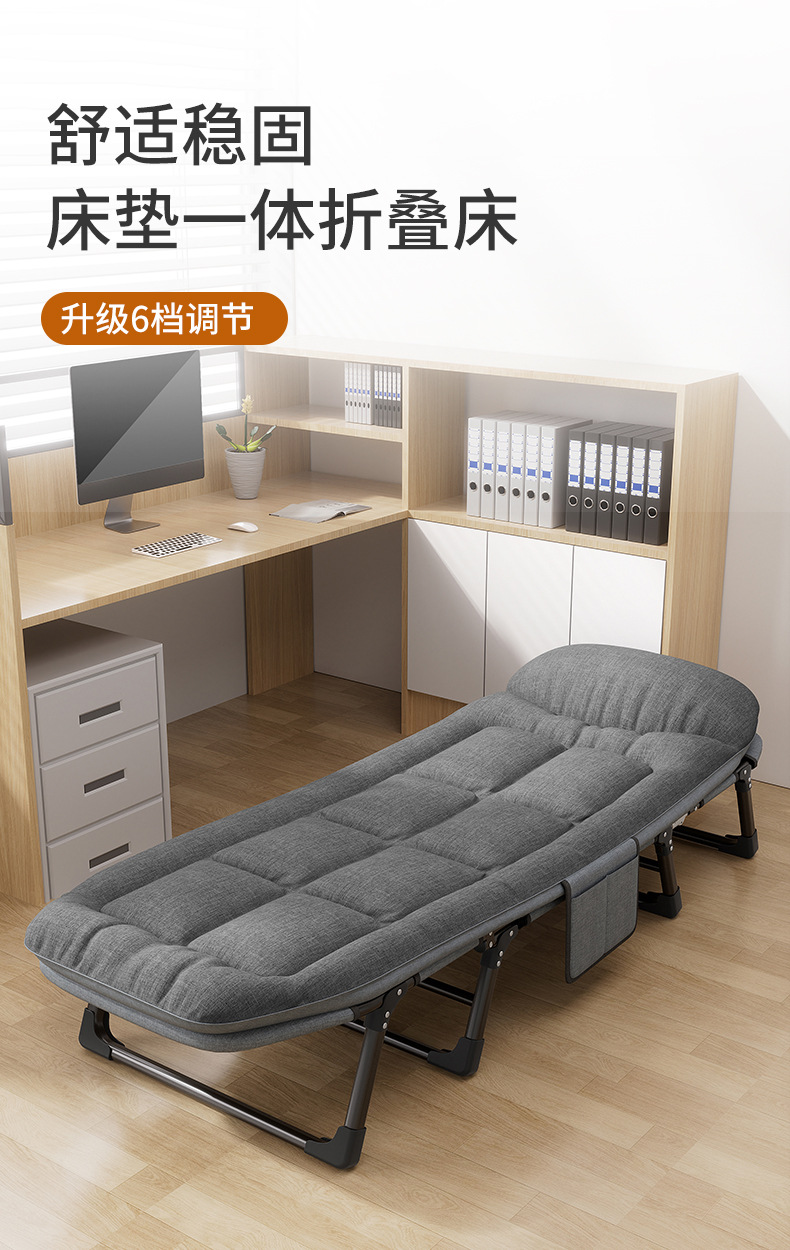 【舒适稳固,床垫一体折叠床!】午休折叠床 户外单人床 简易便携办公室午睡行军床 多功能躺椅陪护床-QA