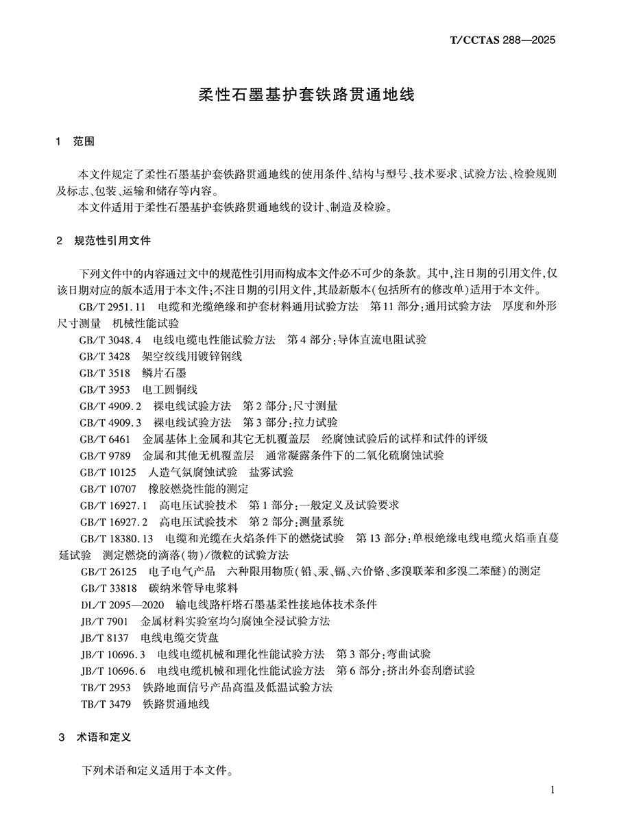 柔性石墨基护套铁路贯通地线T/CCTAS 288—2025