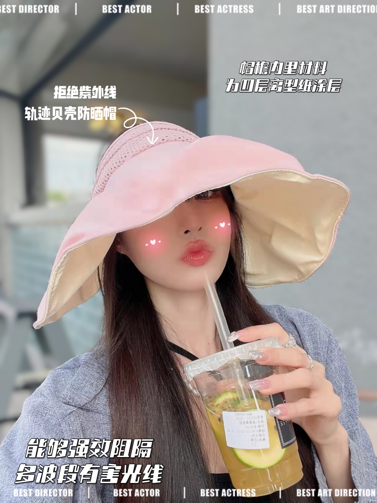 【材质】帽檐内里材料为四层离型纸涂层,强效阻隔多波段有害光线