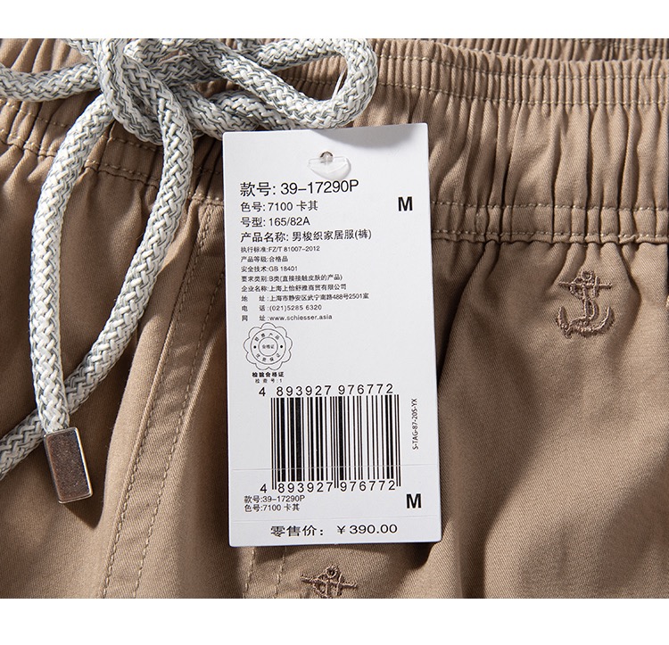 SCHIESSER 德国舒雅男士全棉休闲家居五分裤39/17290P