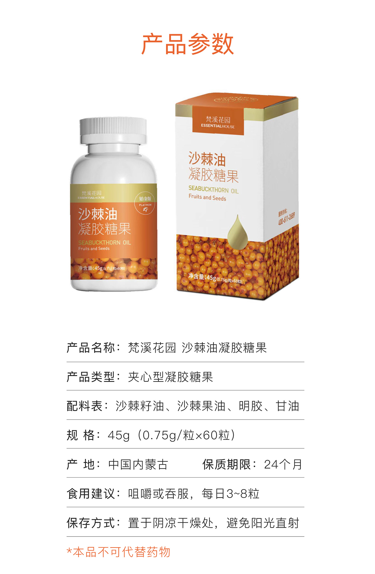 沙棘油(凝胶糖果) 60粒/45g