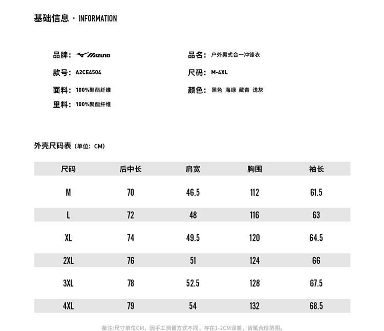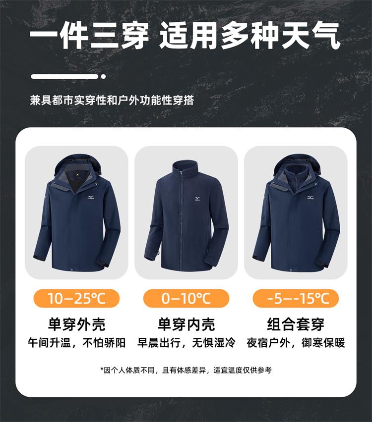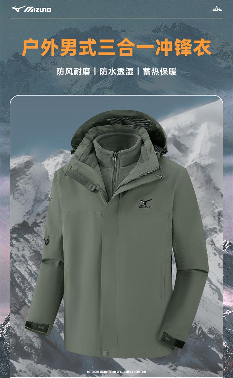 【美津浓】男式户外三合一冲锋衣A2CE4504