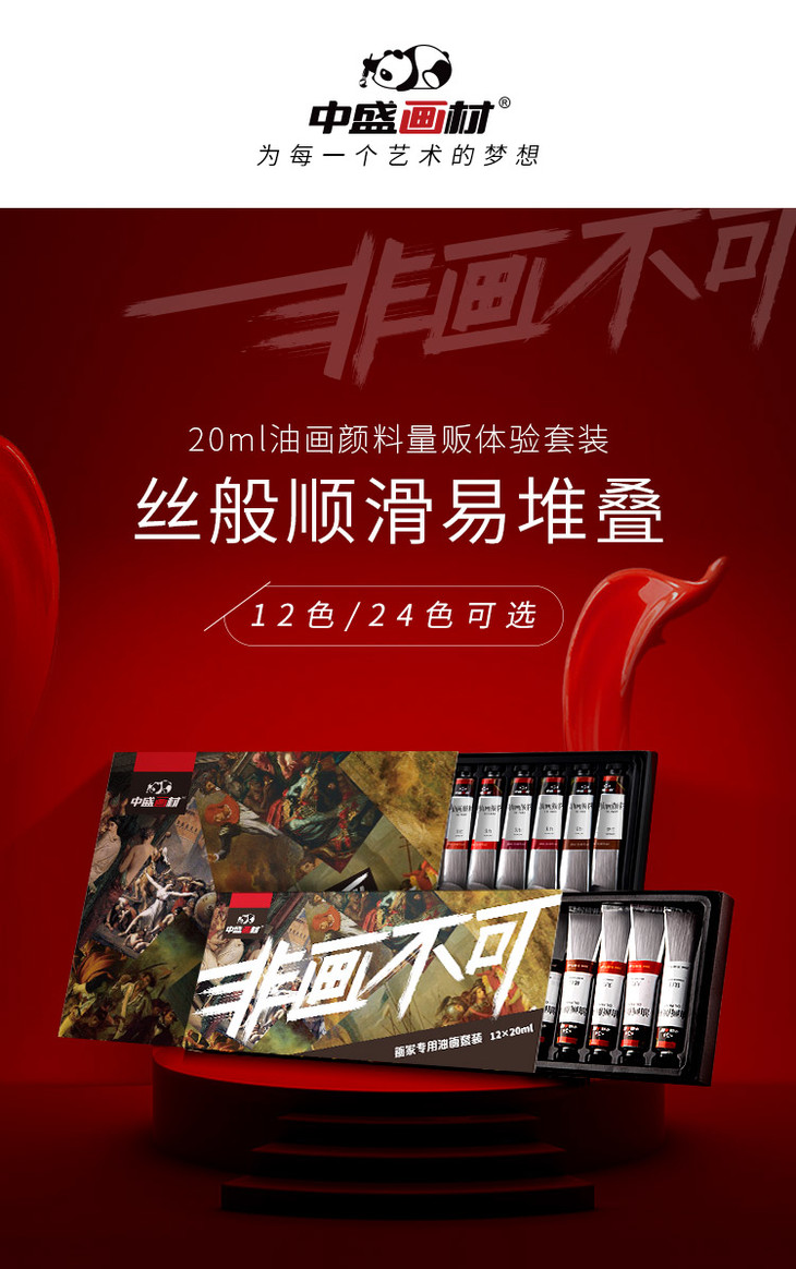 中盛画材 12色24色20ml油画颜料套装 非画不可 美术绘画工具套装初学者盒装