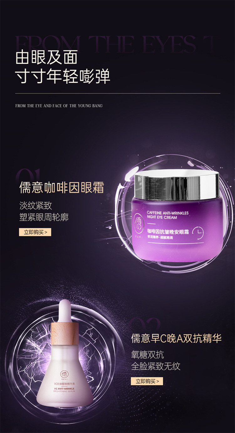 【买一送一 3重专利5重进口成分】儒意咖啡因眼霜黑眼圈淡化细纹抗皱提拉紧致抗氧 50g/每瓶