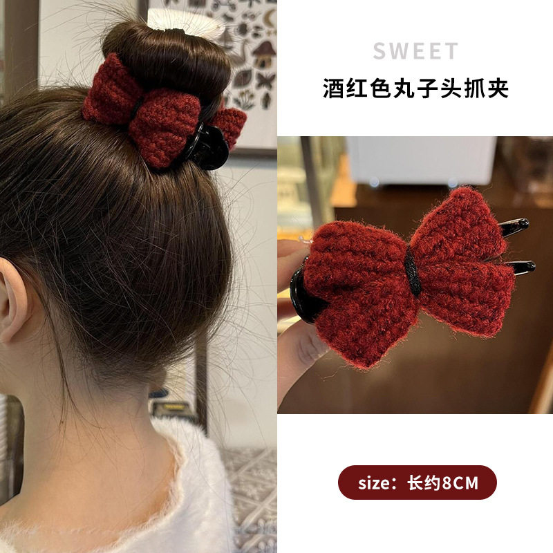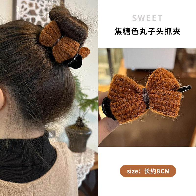 固定夹爪发卡蝴蝶结女发2024针织抓夹头饰夹子丸子头秋冬新款盘发