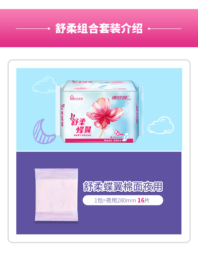 佩安婷舒柔蝶翼系列280mm夜用棉面16片
