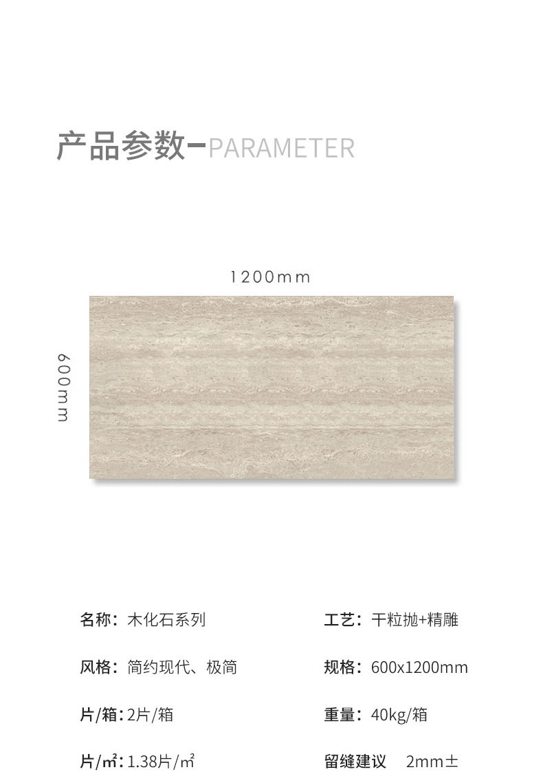 600x1200瓷砖洞石客哑光木化石无洞间厨卫墙地砖防滑砖餐厅 商品图2