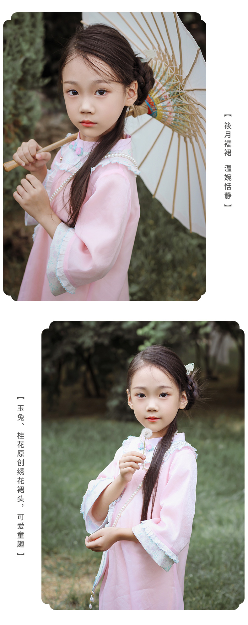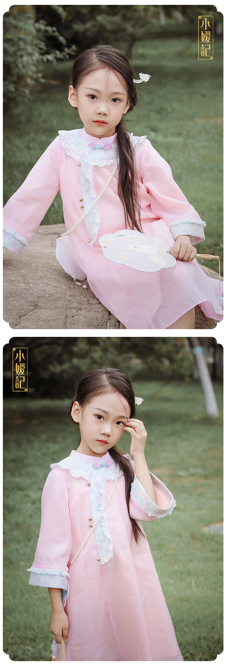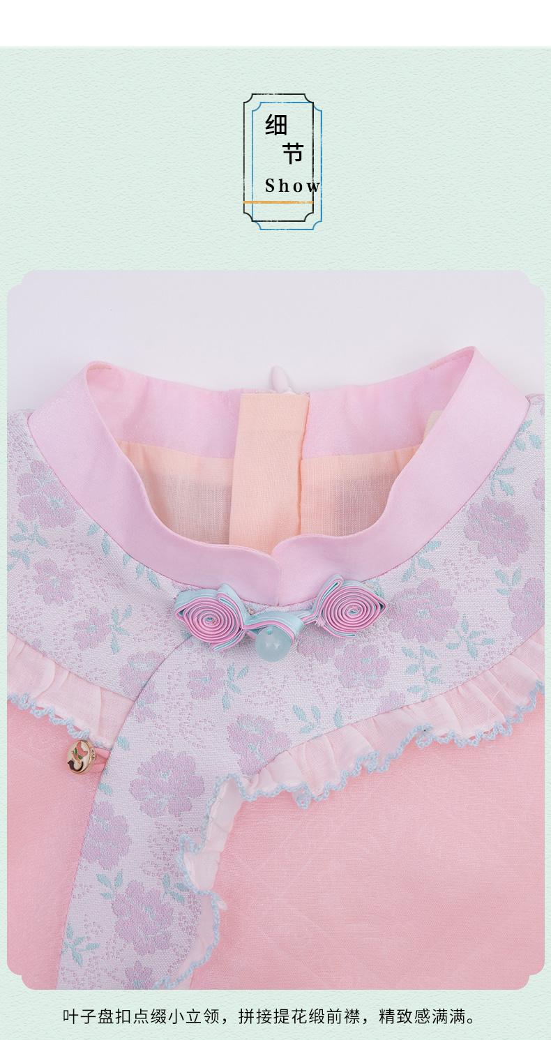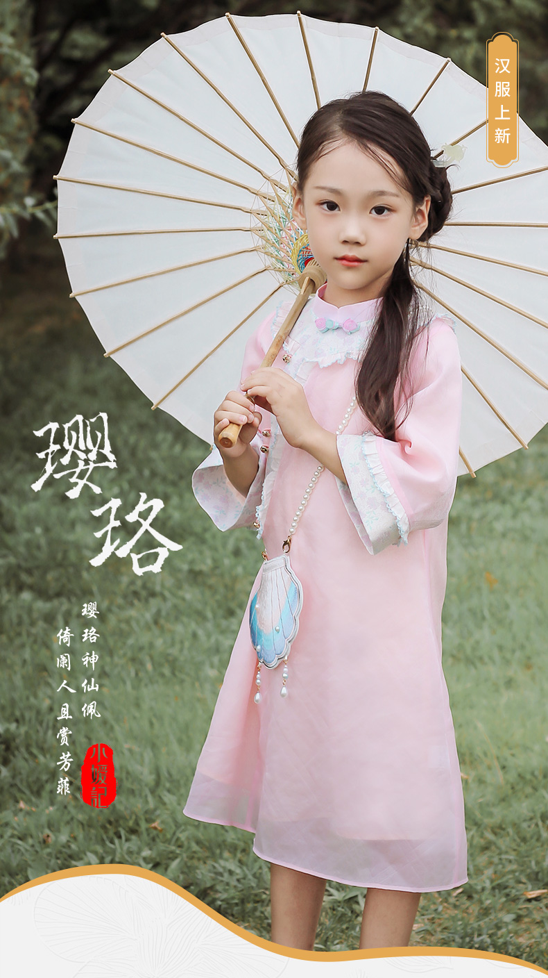 小嫒記 汉服女童秋季儿童古装中国风中袖女宝连衣裙-璎珞旗袍