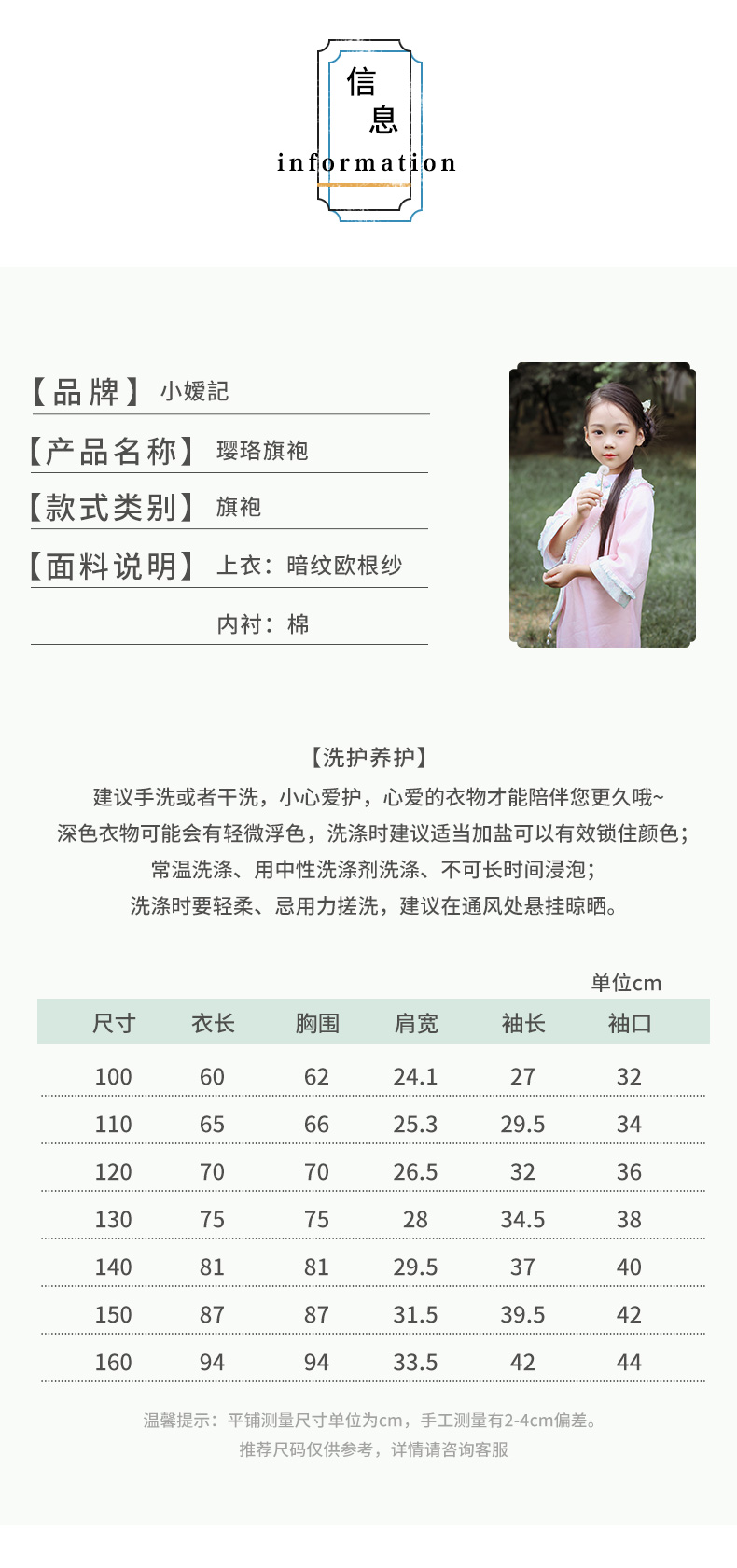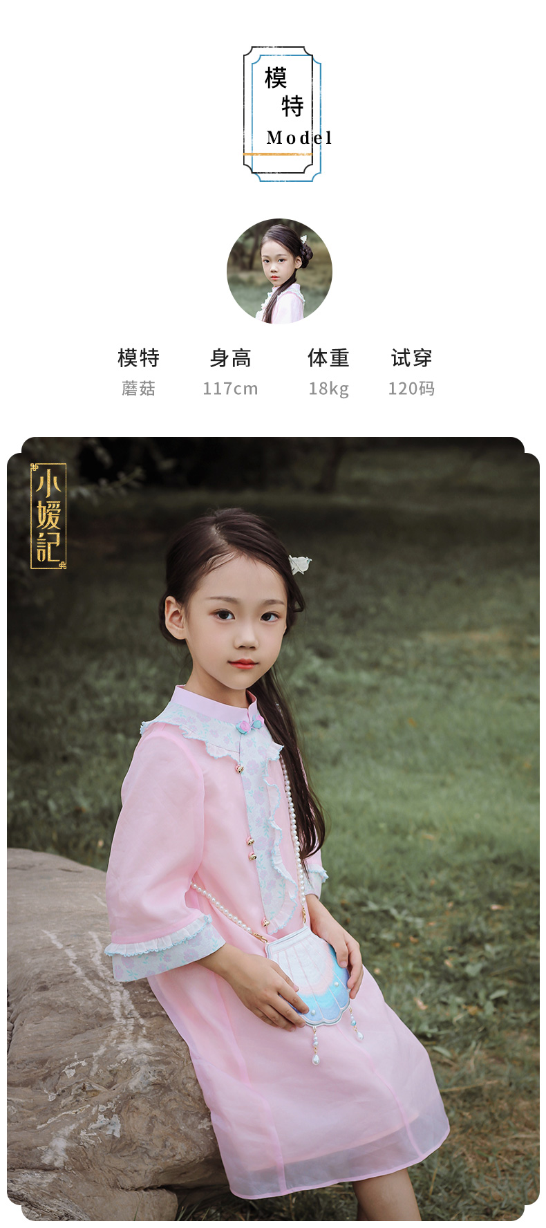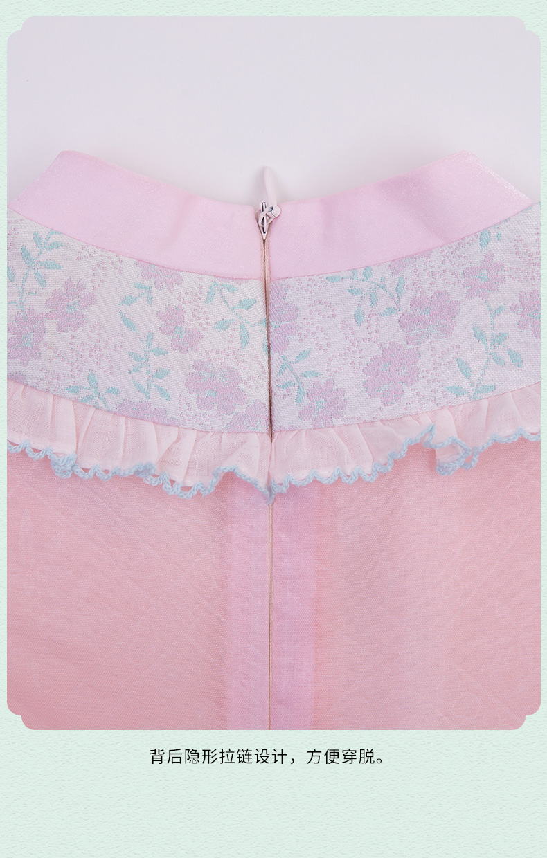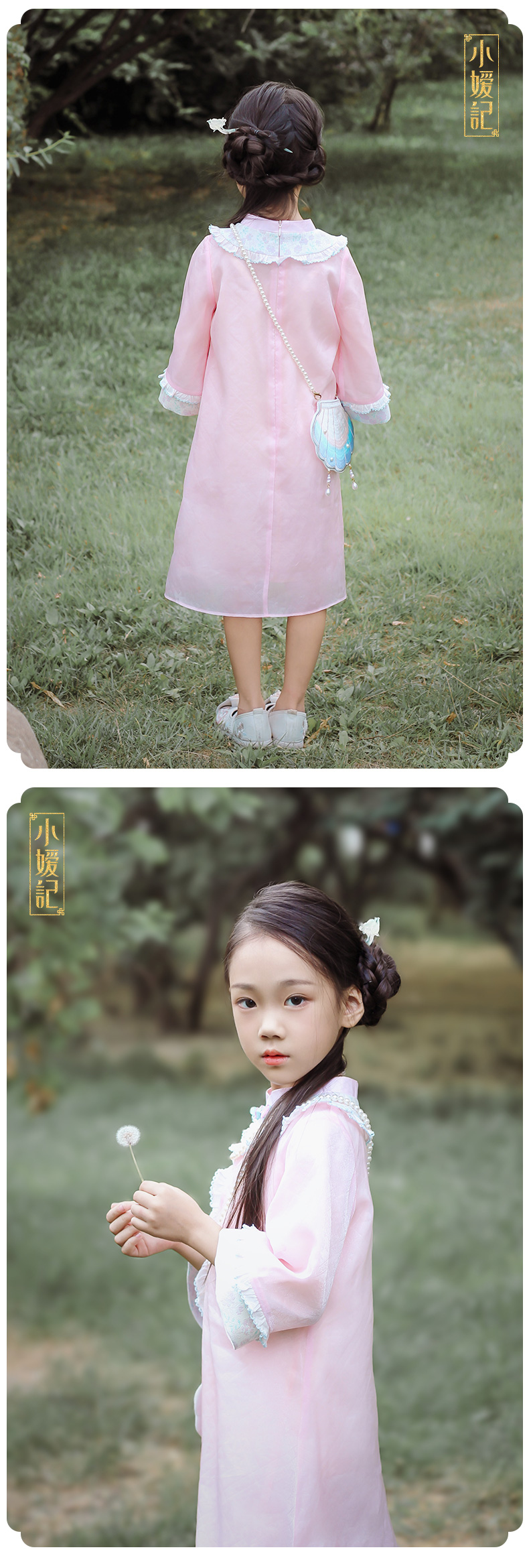 小嫒記 汉服女童秋季儿童古装中国风中袖女宝连衣裙-璎珞旗袍