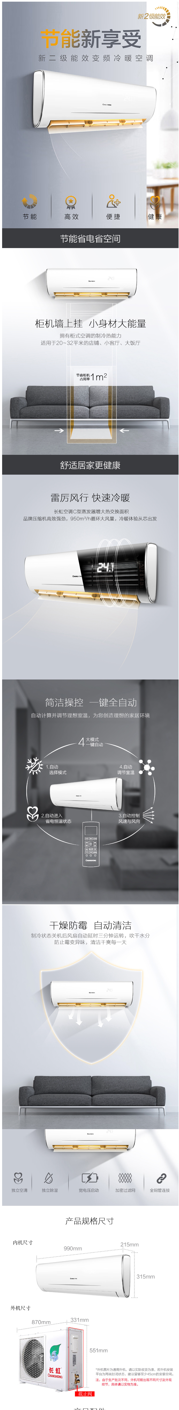 长虹(130281)(CHANGHONG)2匹 二级能效 冷暖变频挂机KFR-51GW/ZDHID(W1-G)+R2