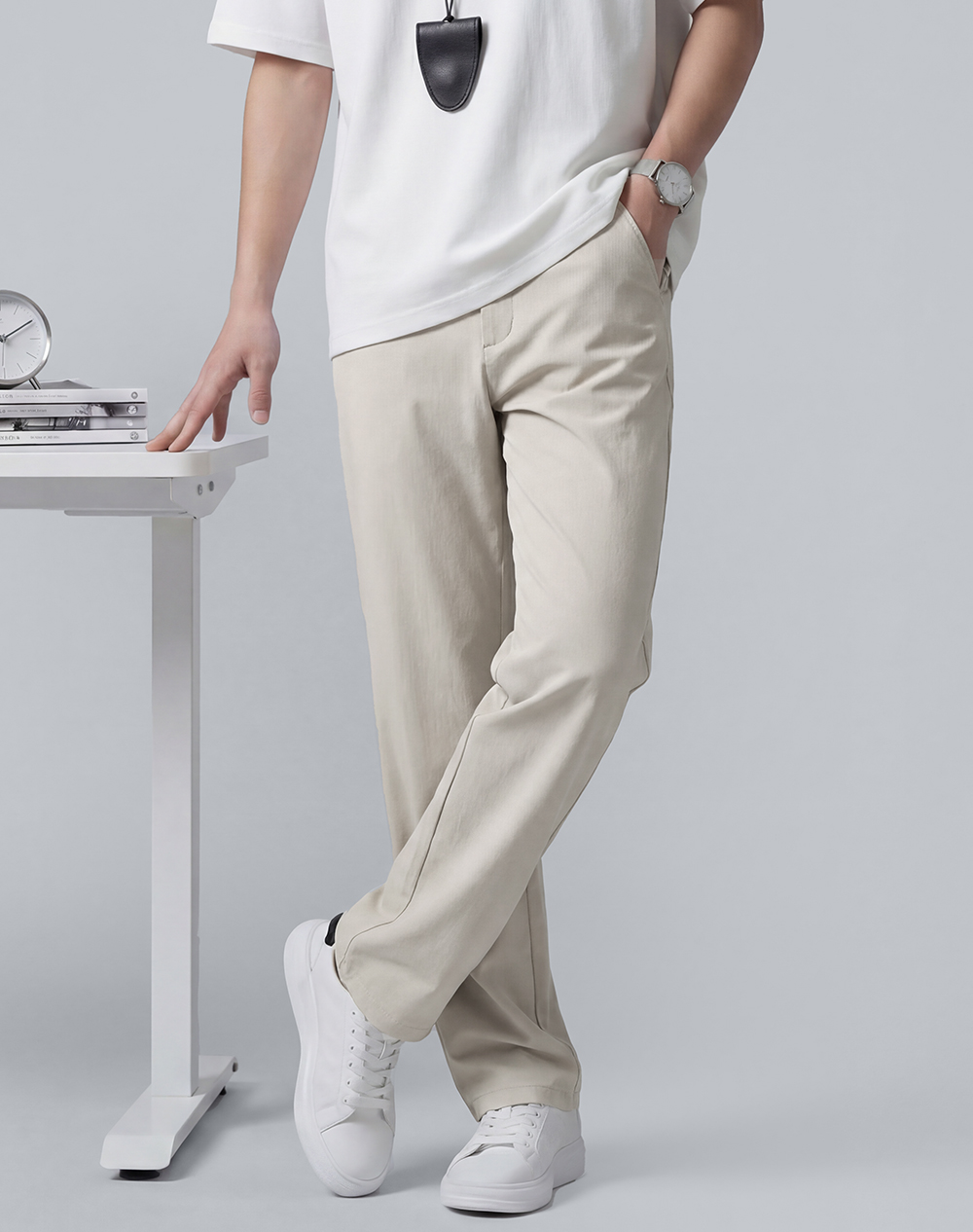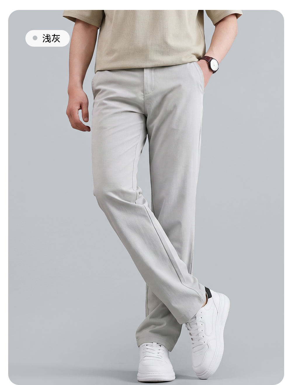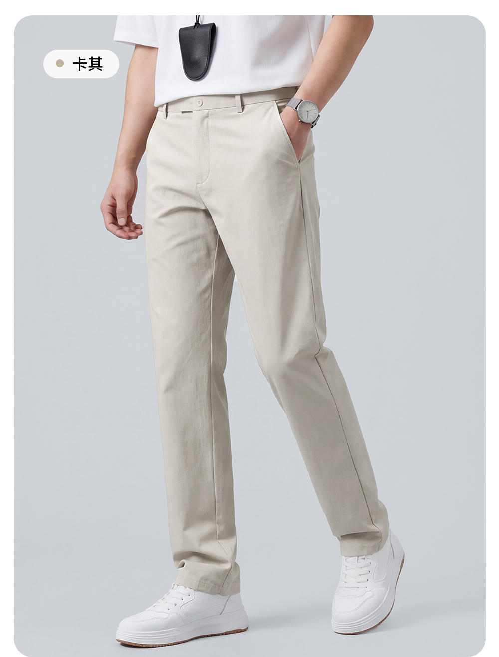 【含棉】圣得西休闲裤男款2026新款春季舒适透气百搭纯色直筒裤子