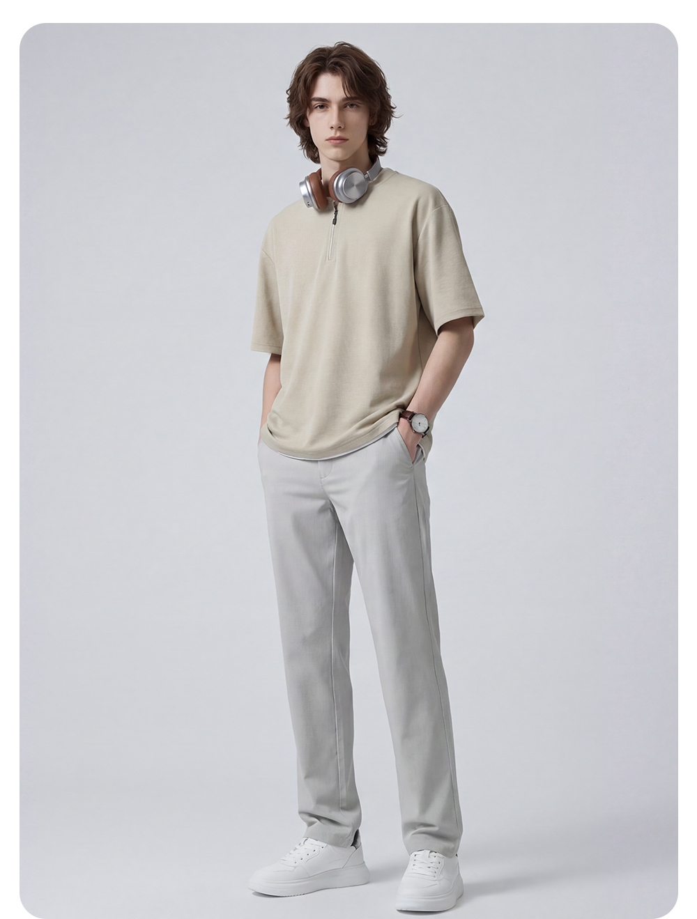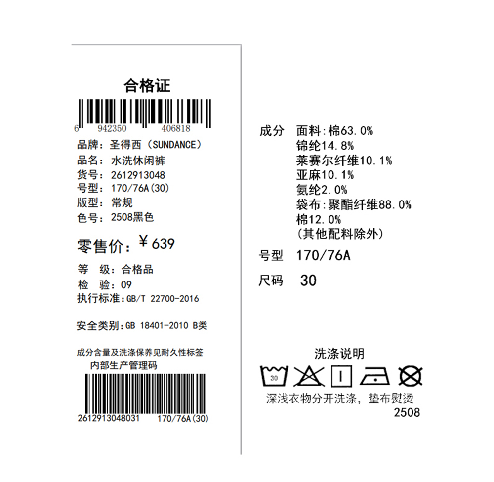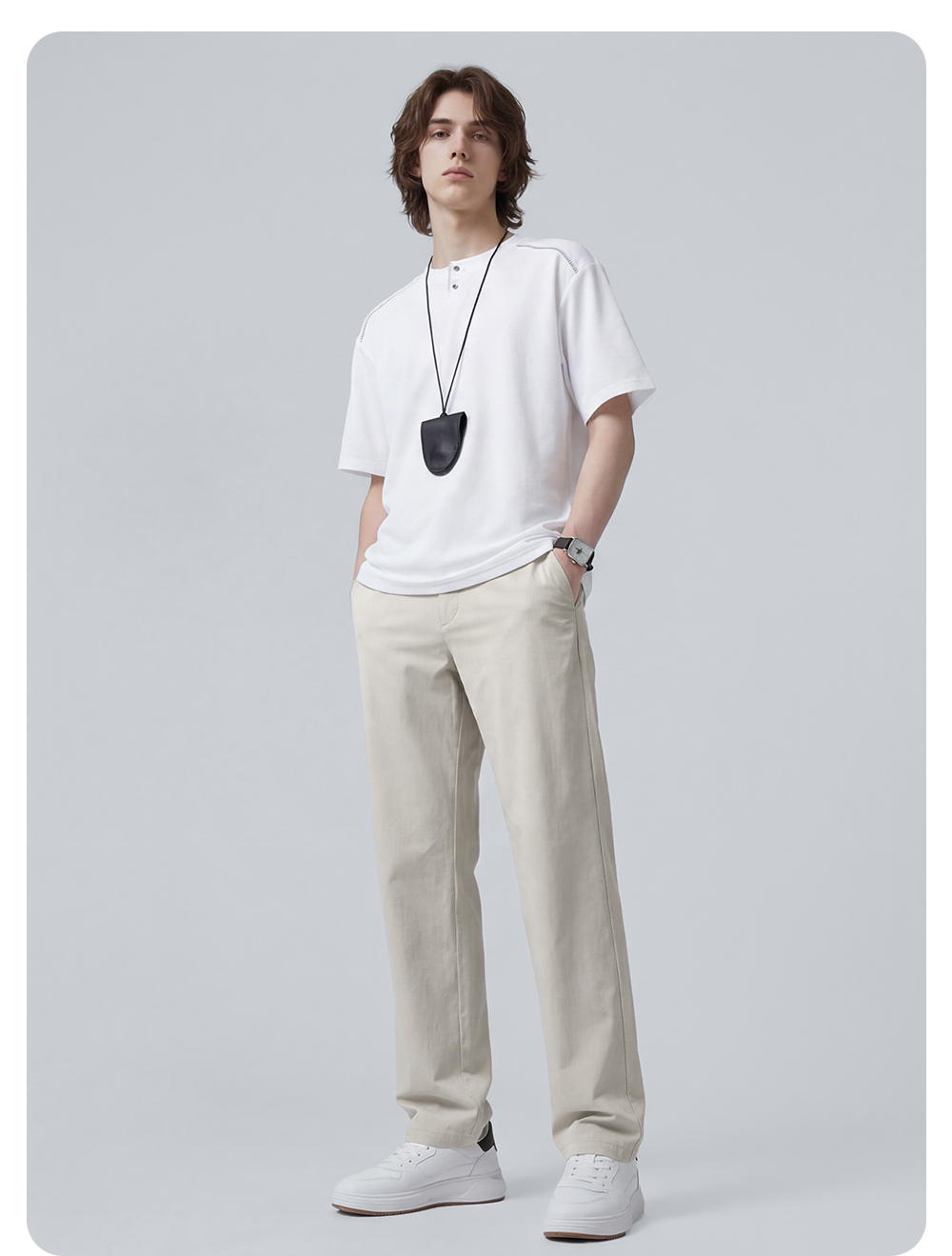 【含棉】圣得西休闲裤男款2026新款春季舒适透气百搭纯色直筒裤子