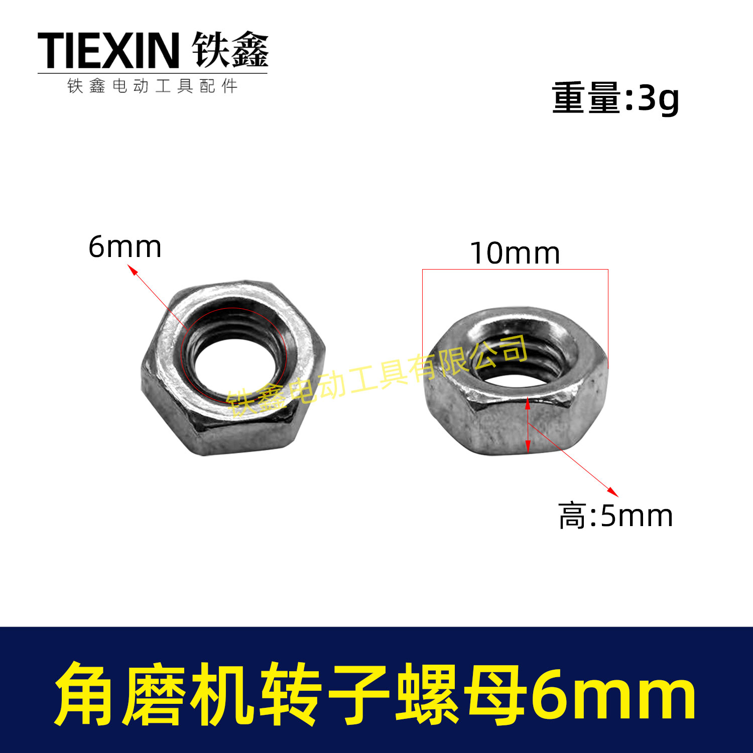 【货号03047】适配博世6-100型角磨机转子螺母6MM螺母磨光机齿轮螺母正牙螺母