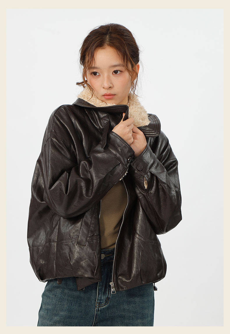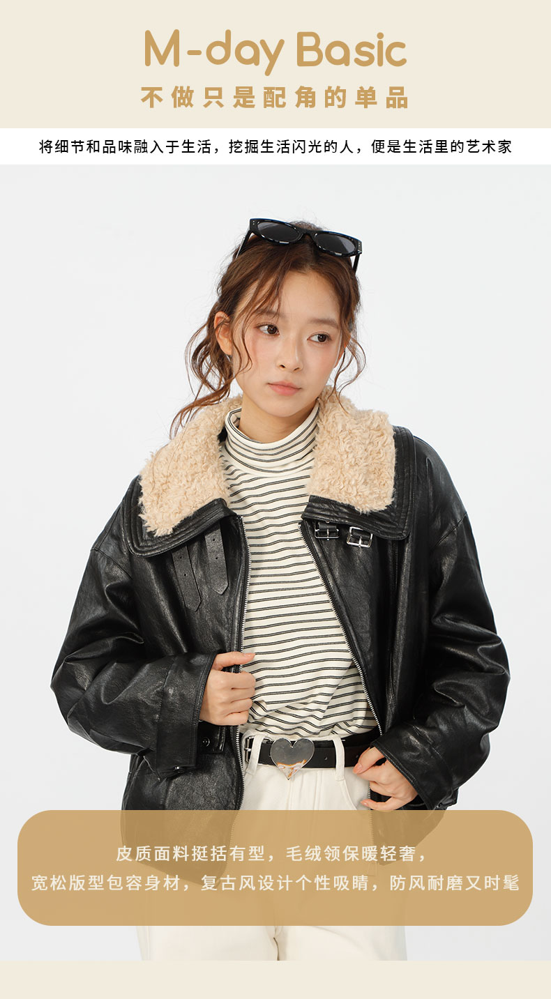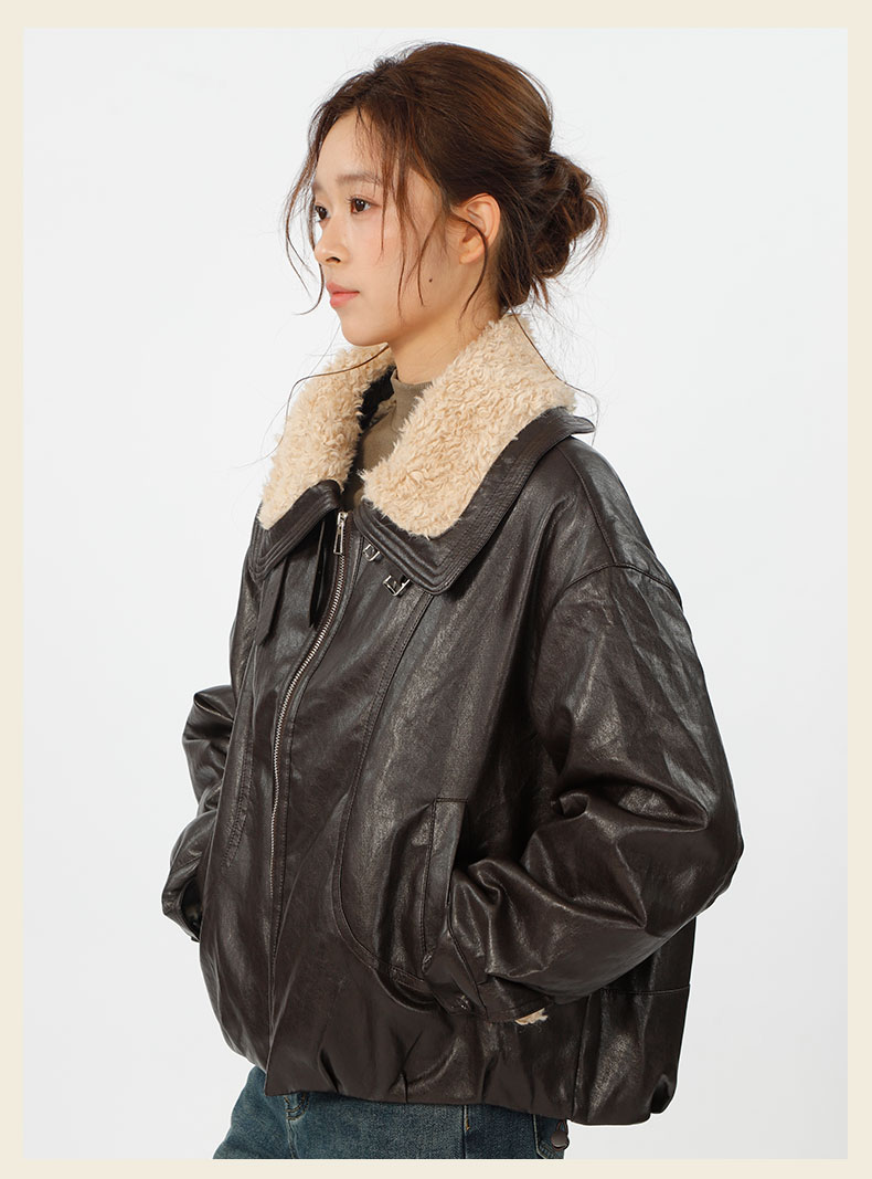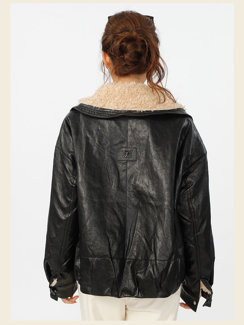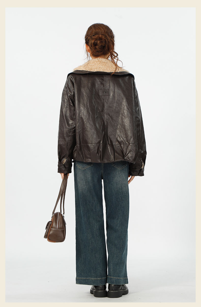 复古宽松版毛绒大翻领皮衣外套-纪念日百货门店同款167343996