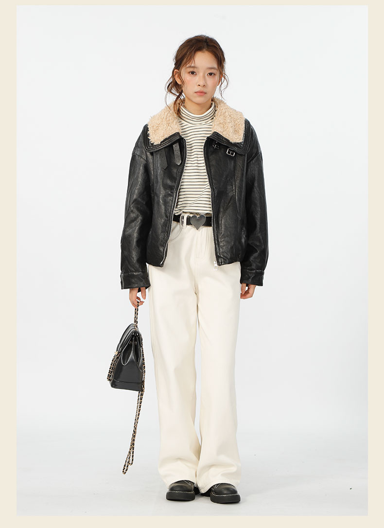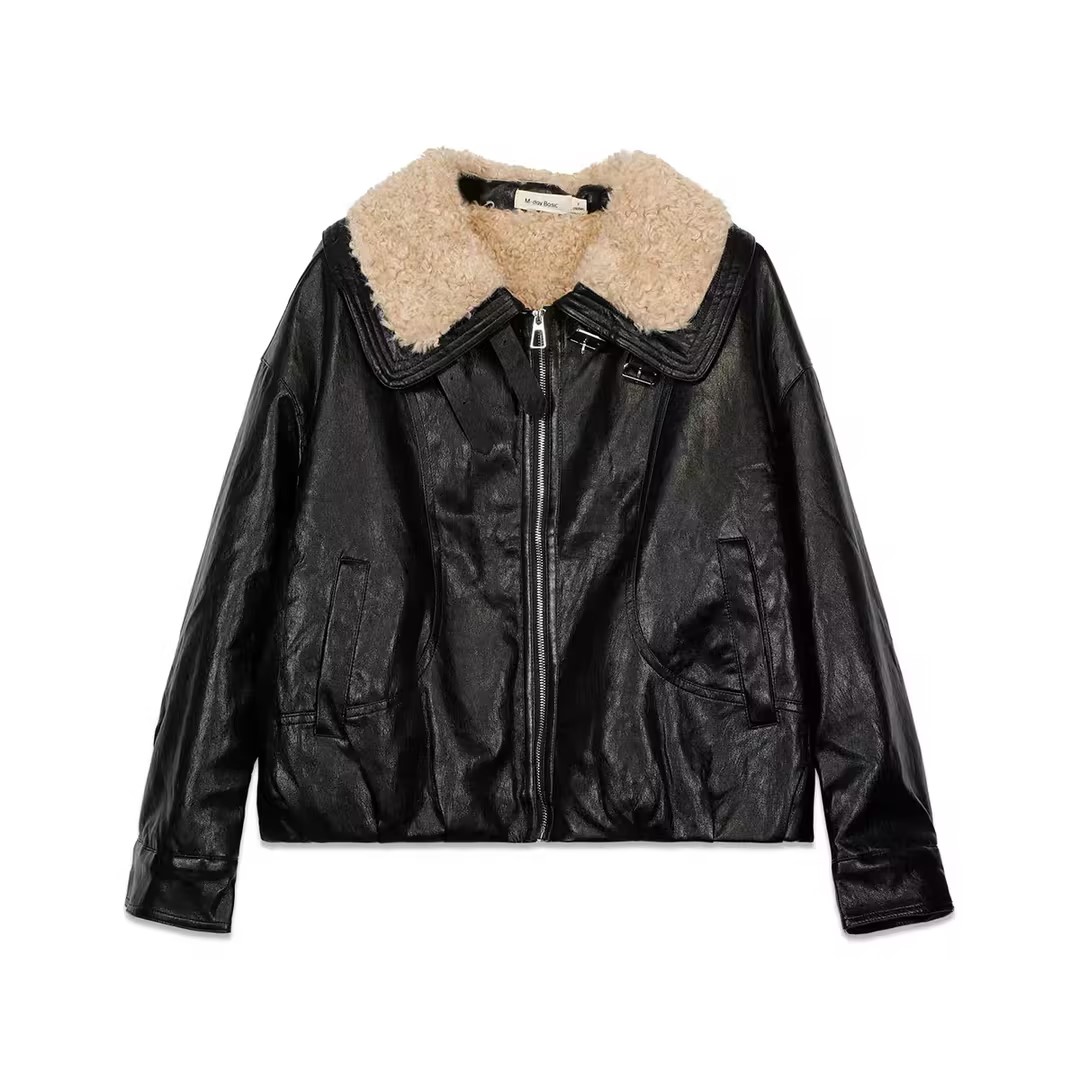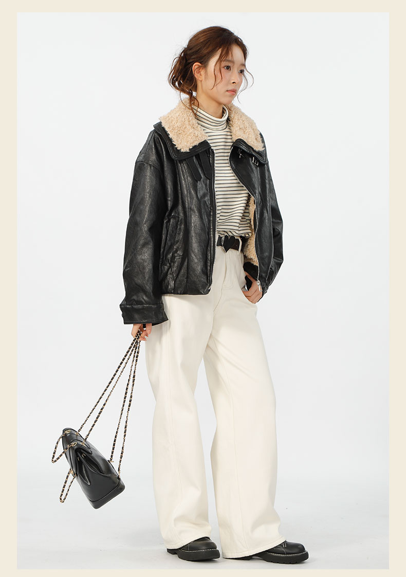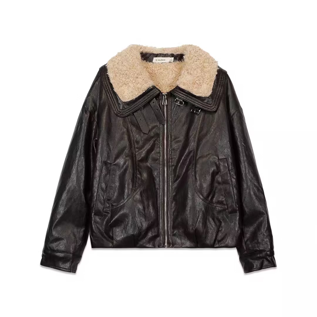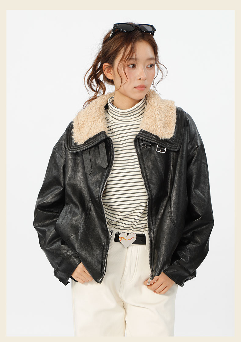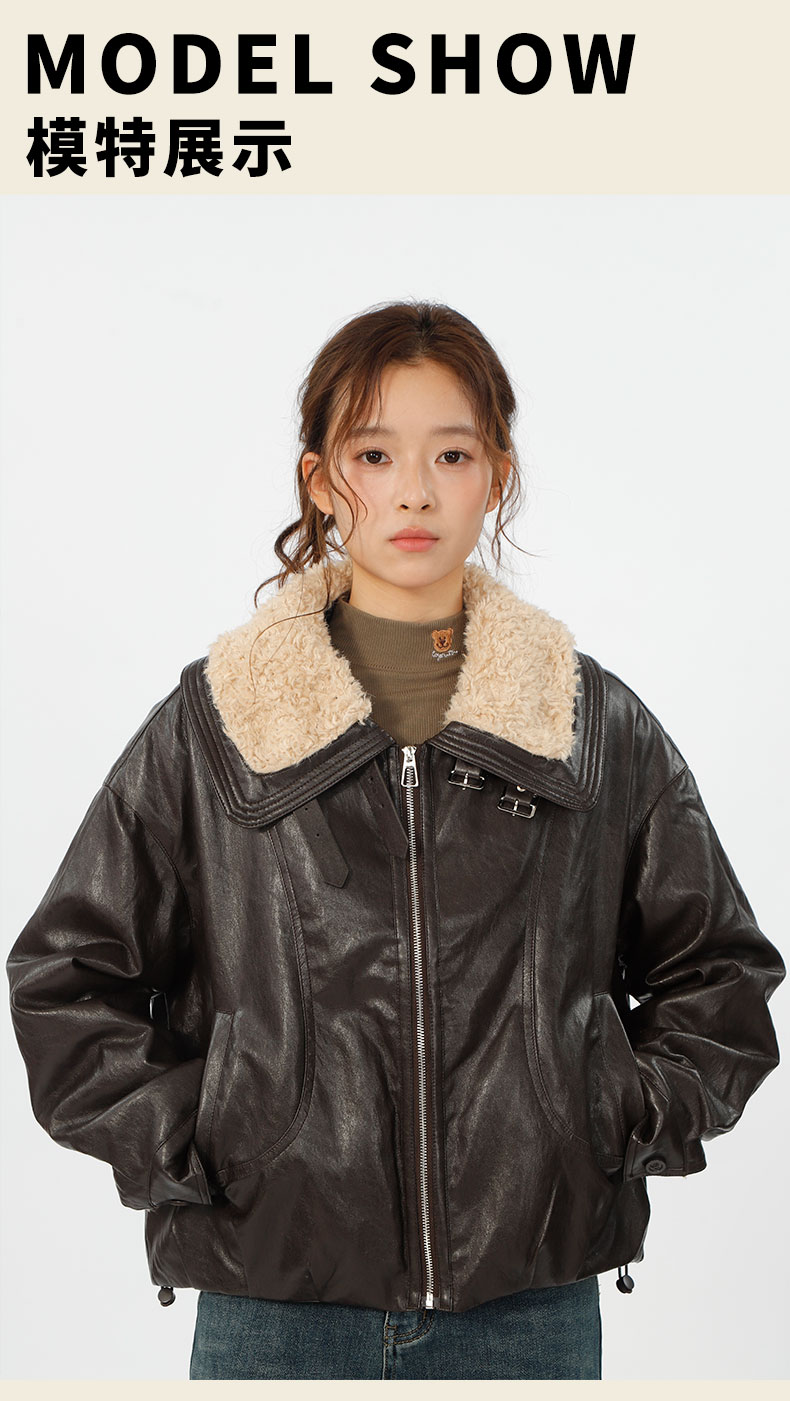 复古宽松版毛绒大翻领皮衣外套-纪念日百货门店同款167343996