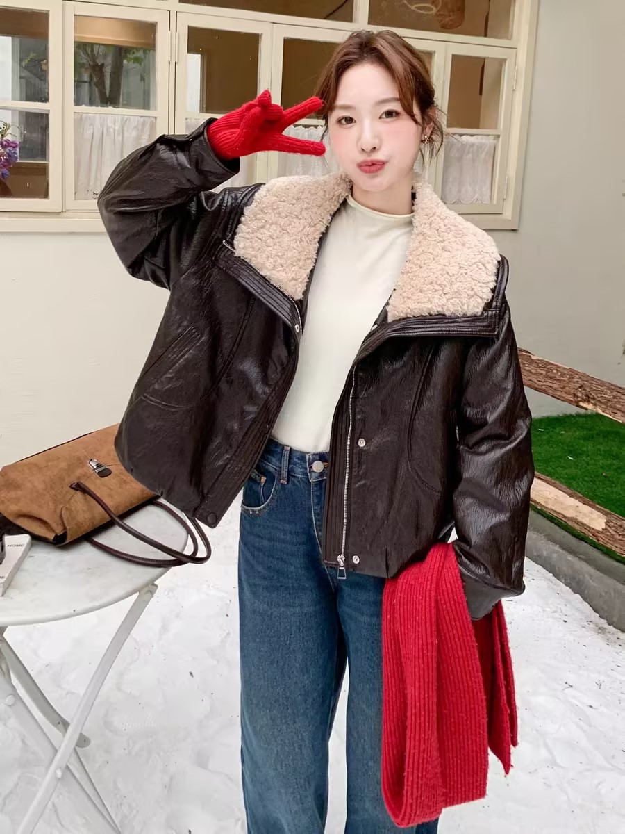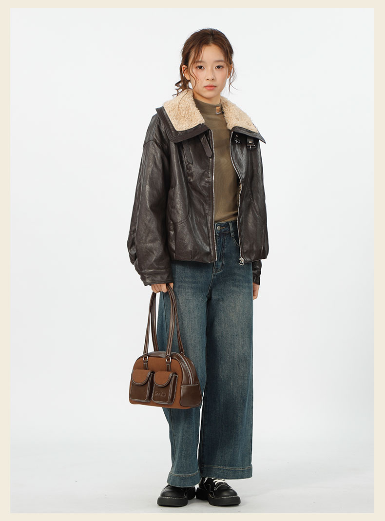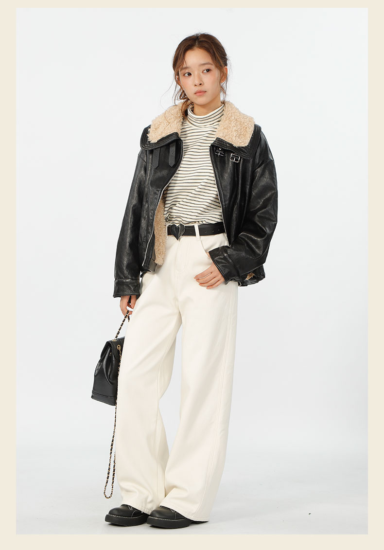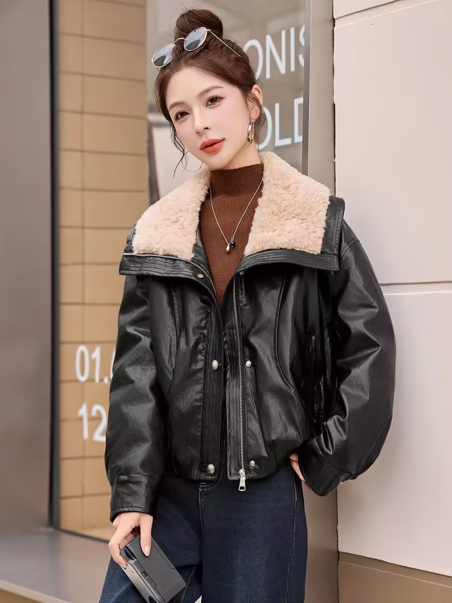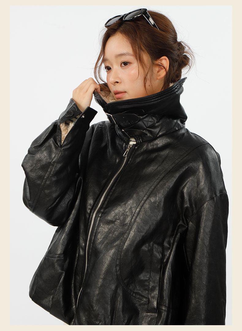 复古宽松版毛绒大翻领皮衣外套-纪念日百货门店同款167343996