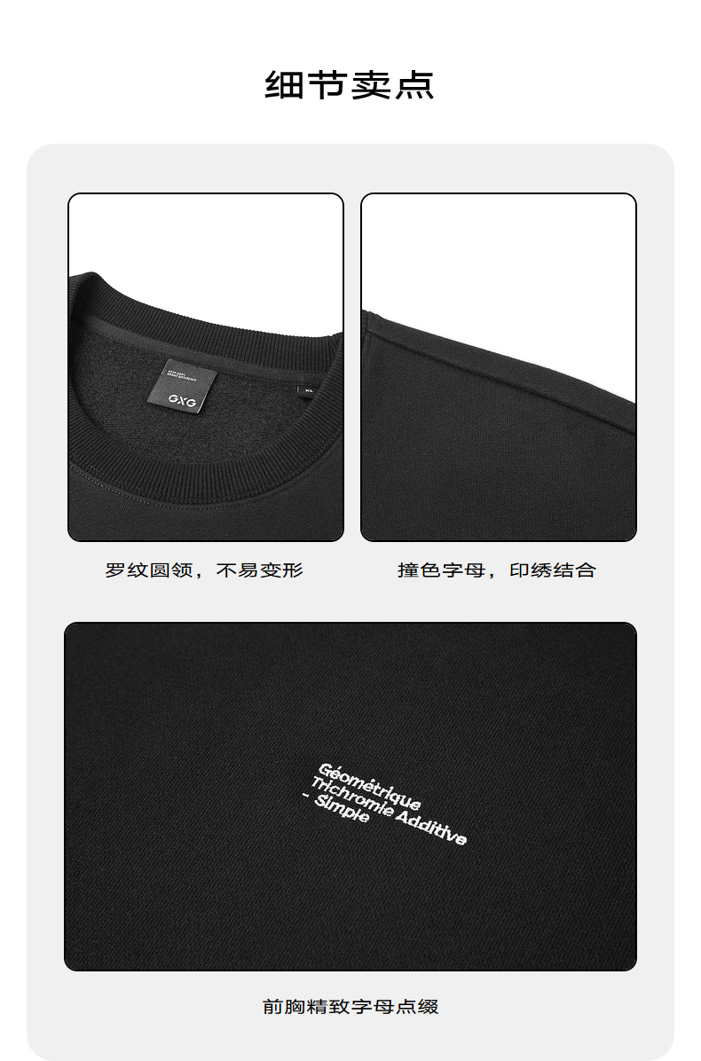 GXG男装 黑色字母印绣圆领卫衣 冬季热卖时尚卫衣GEX13127054