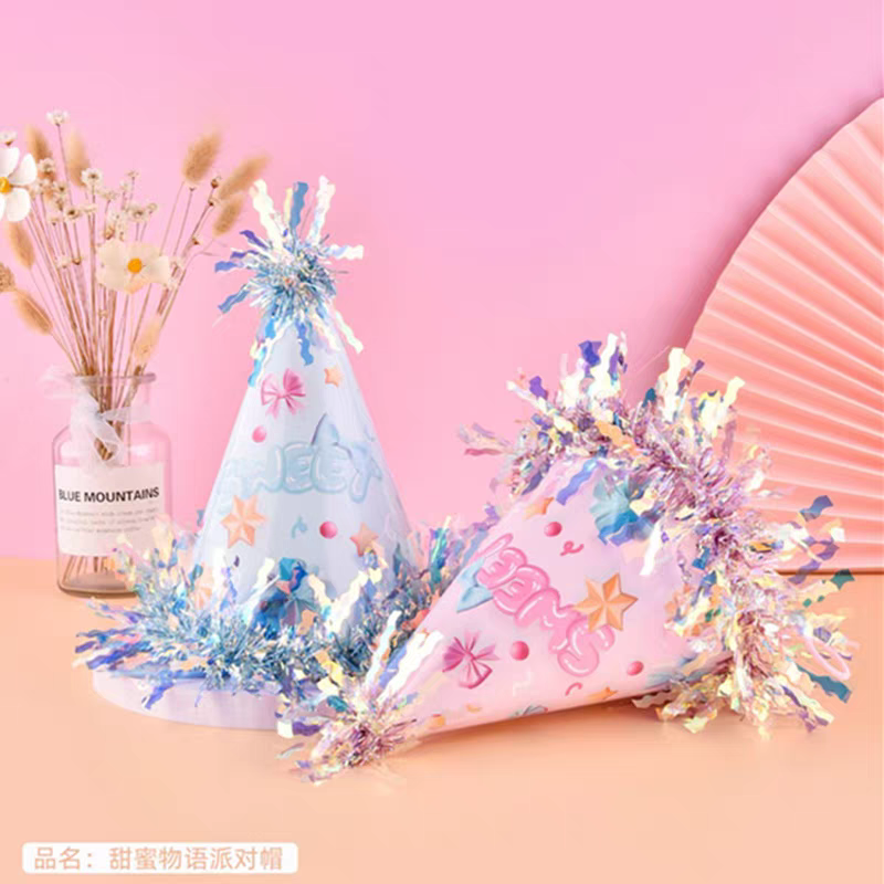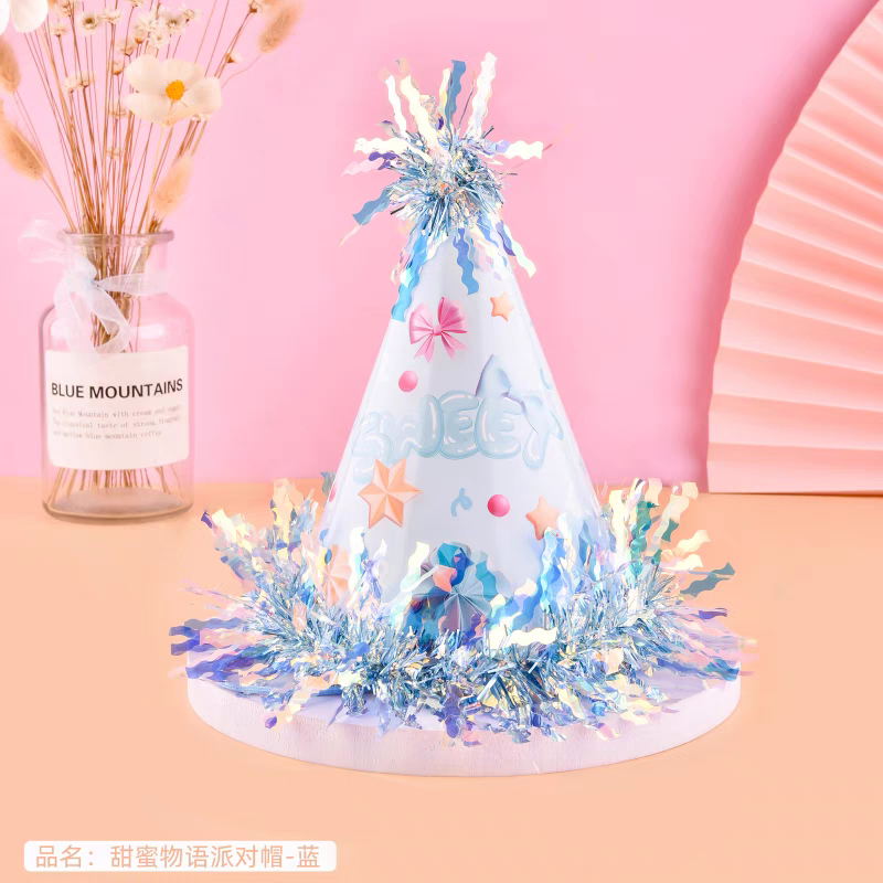 Sweet雨丝生日帽 蓝色/粉色 甜蜜物语生日派对帽子 炫彩雨丝生日帽