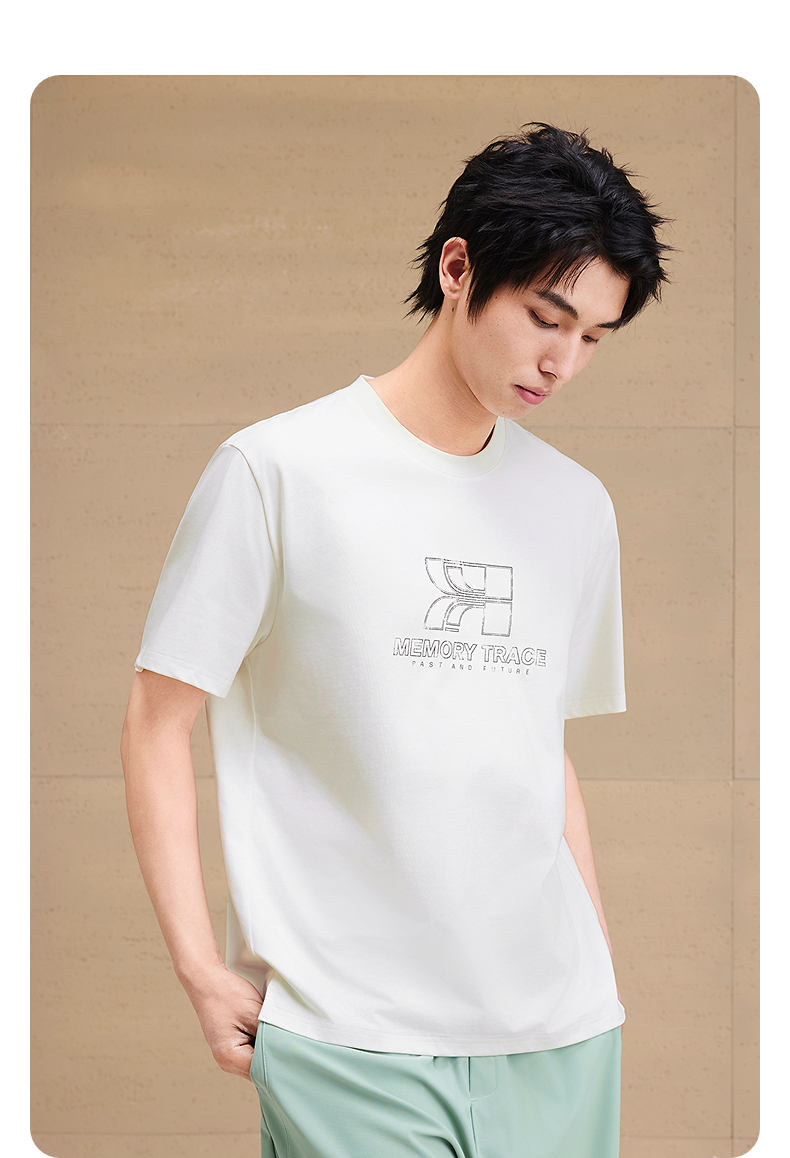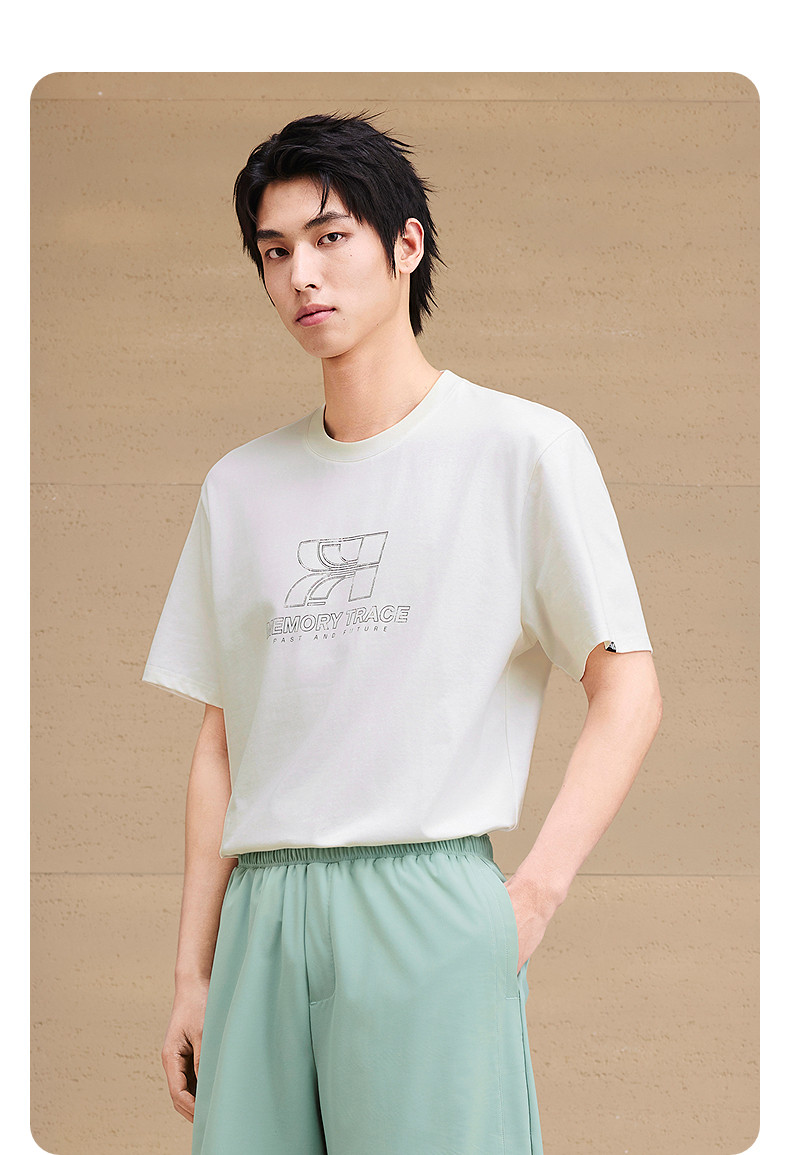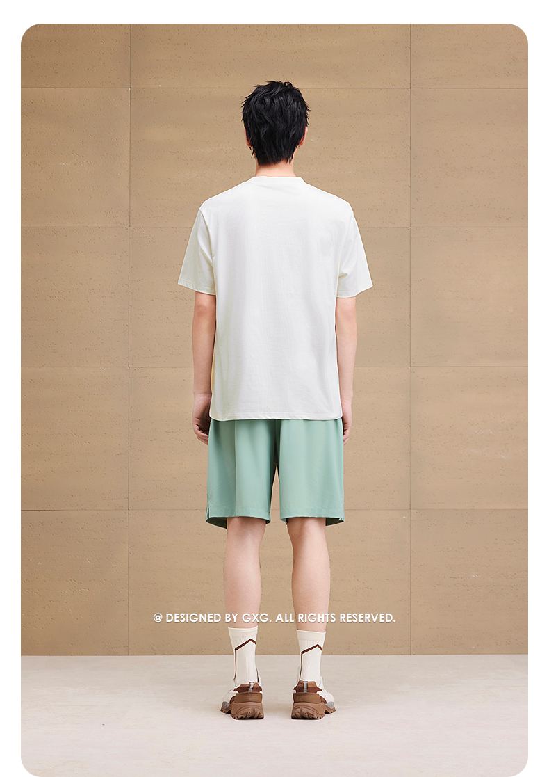 GXG男装 圆领T恤双色图案印花上衣凉感短袖针织 2025夏季新品