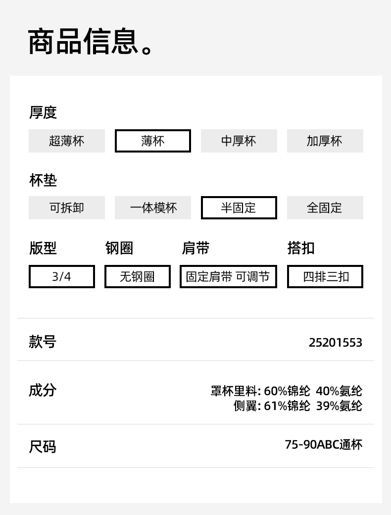 【商场同款】熳洁儿 自由无尺码内衣软胶骨舒适百搭光面网纱文胸 25201553