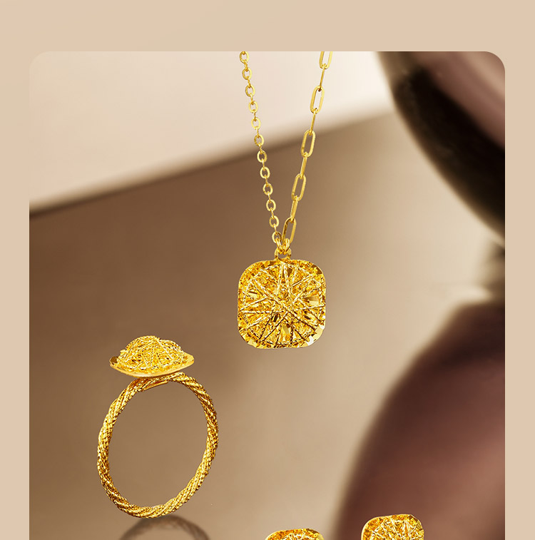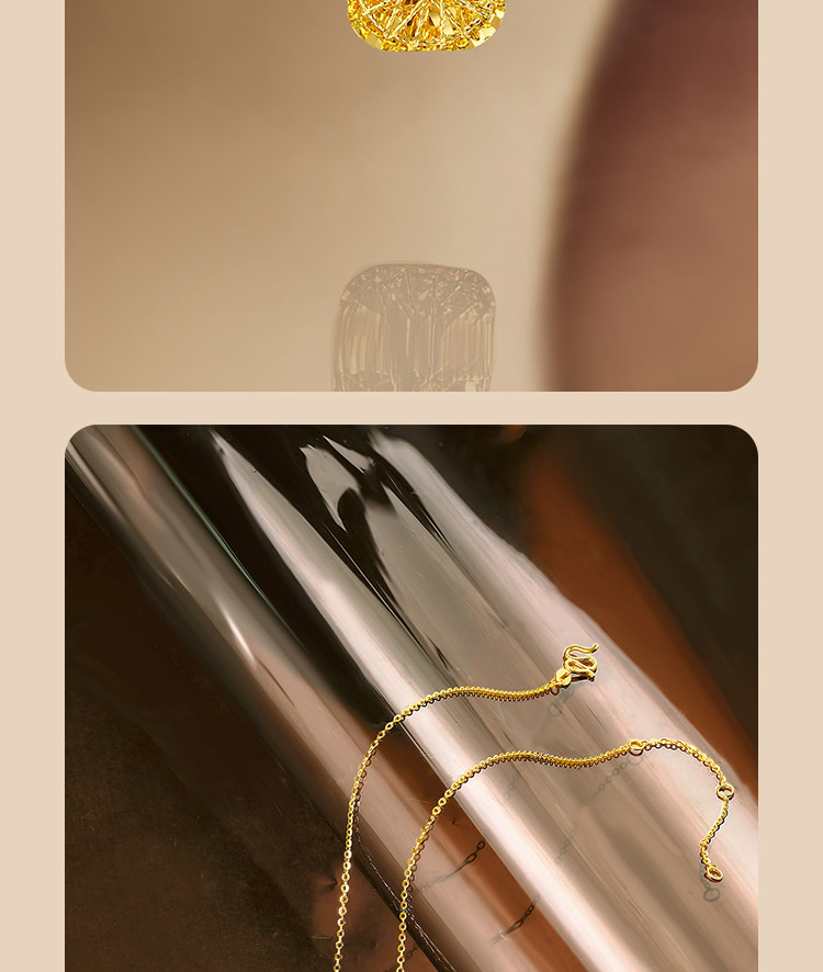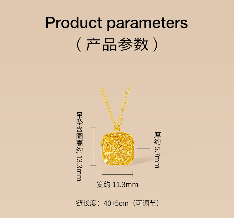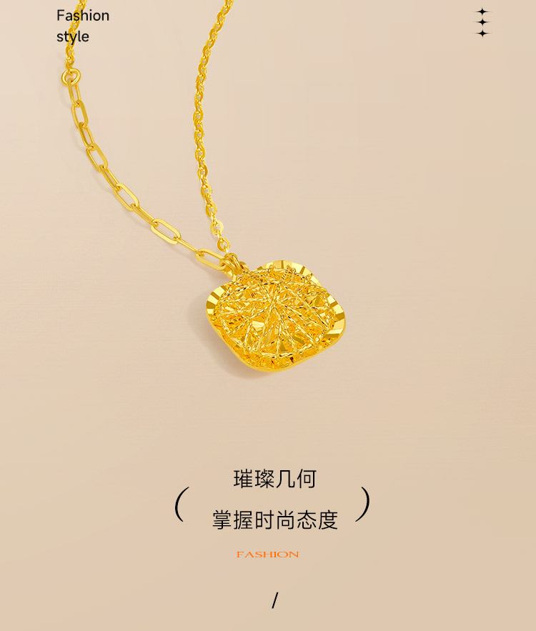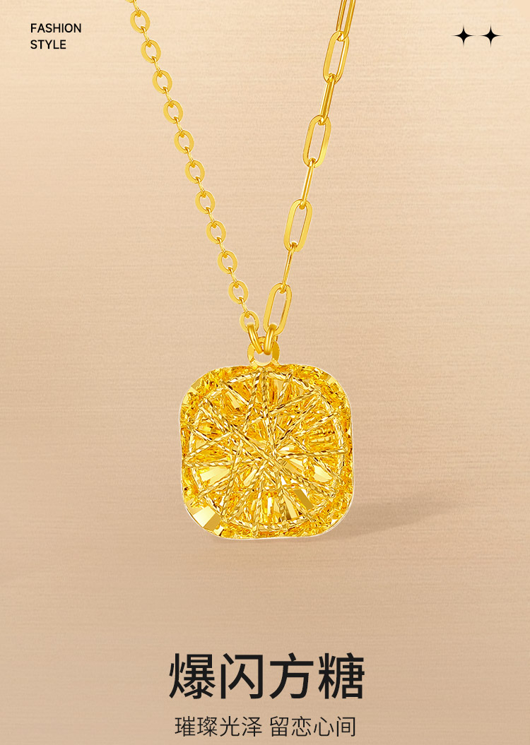 周六福黄金项链女计价足金爆闪方糖链坠送女友礼物官方旗舰店