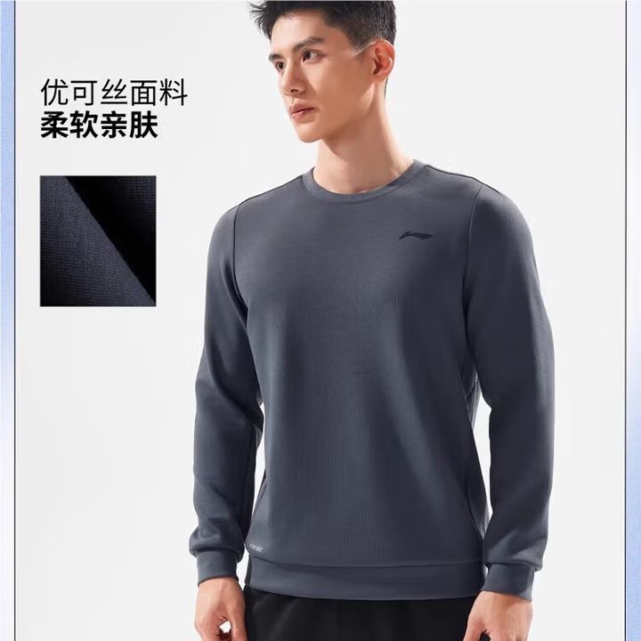 李宁男子2025秋季套头吸汗运动上衣健身卫衣AWDV501-6